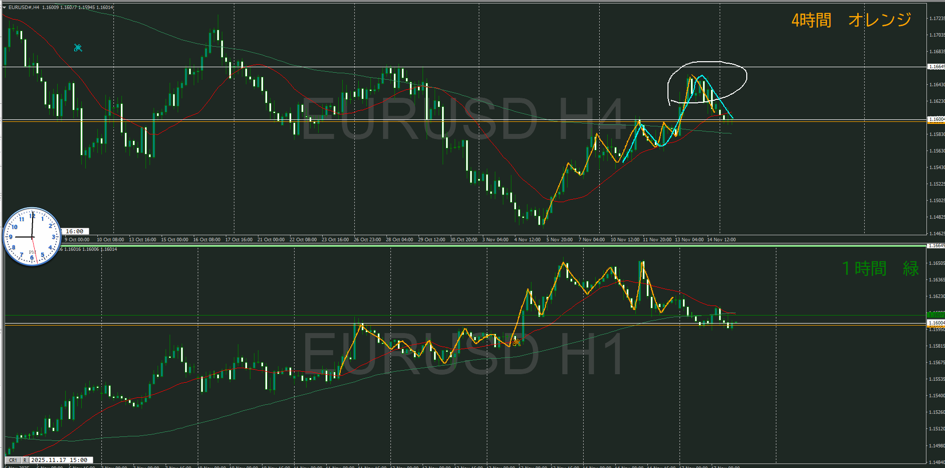 4時間ー1時間足チャート