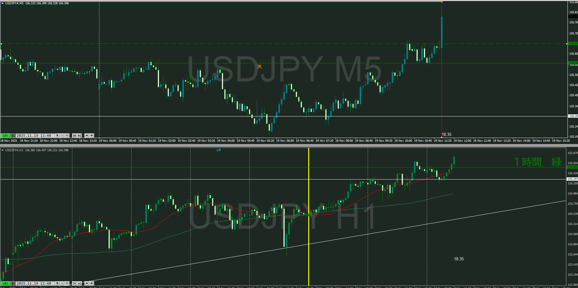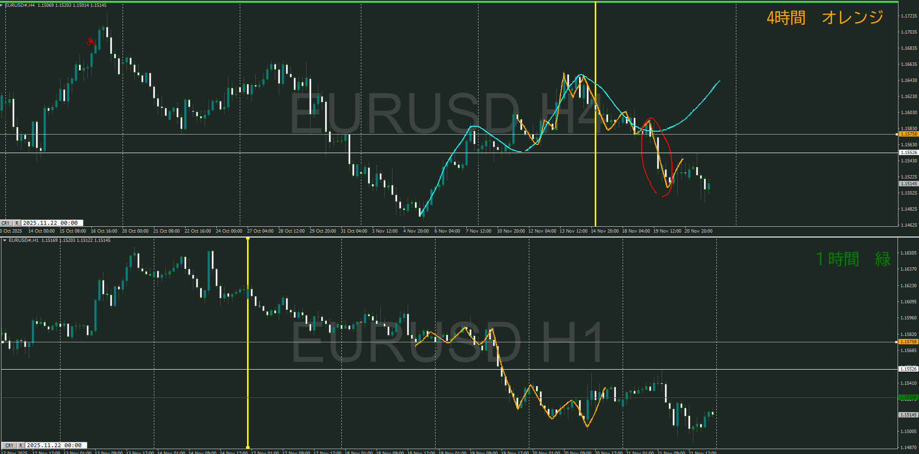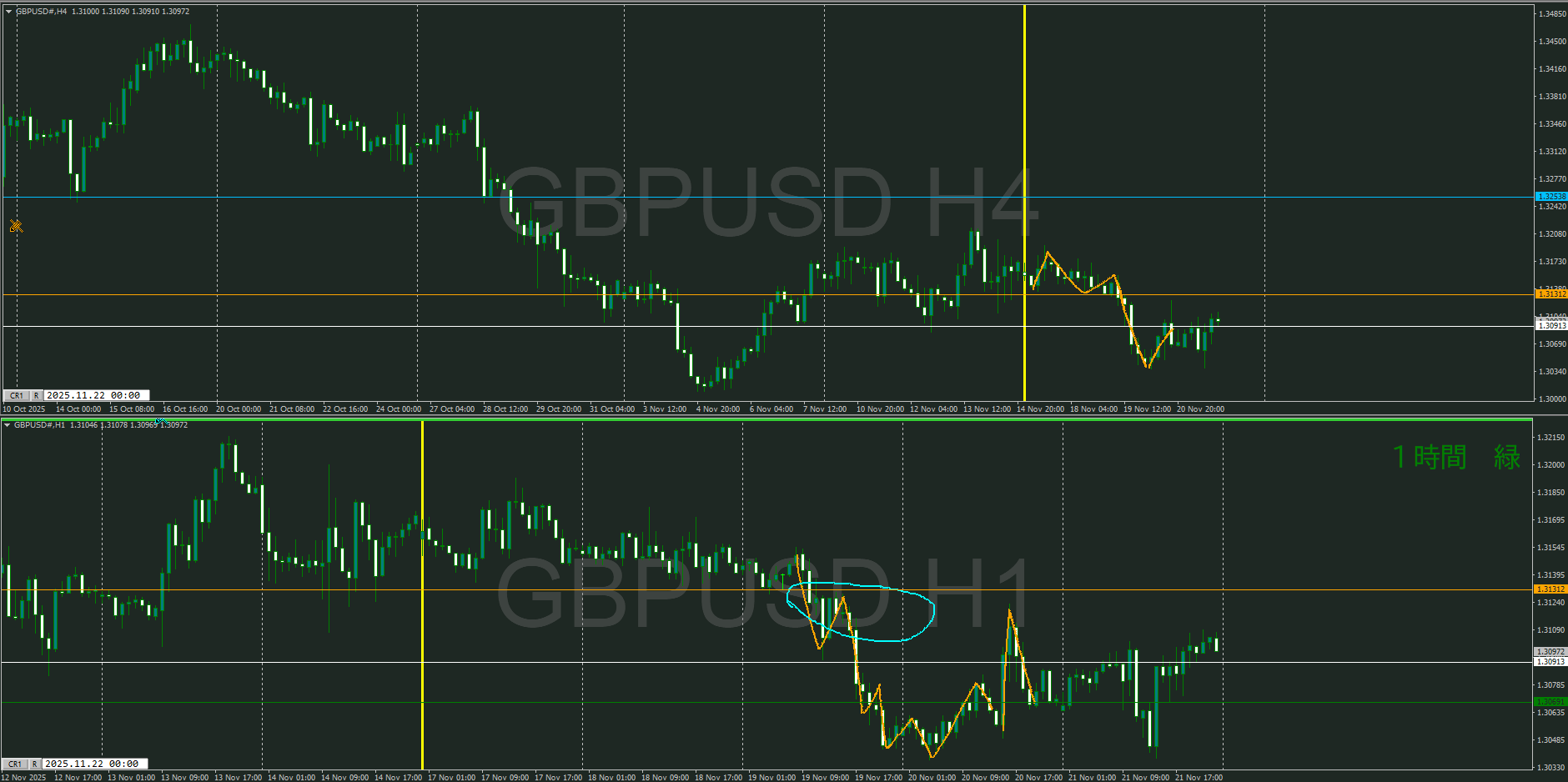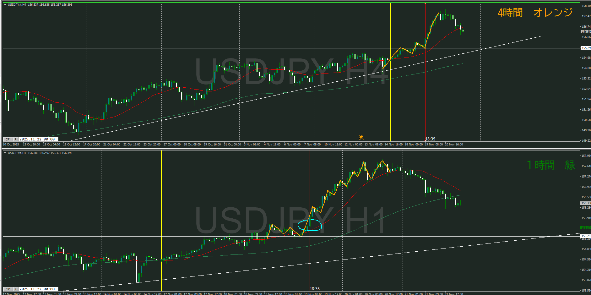 ここは朝から4時間の波の途中からの1時間の上昇を狙っていたもの