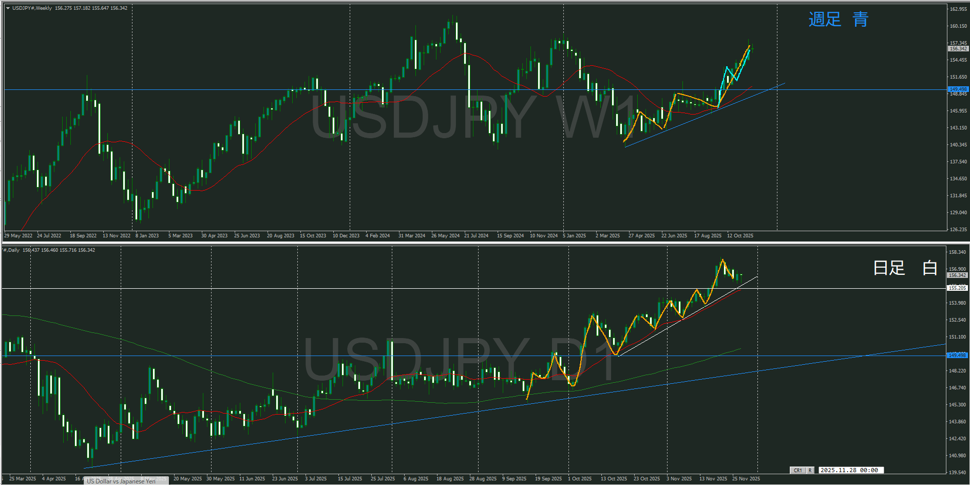 ただし、週足の節目があるので大きく伸びるとは限らない