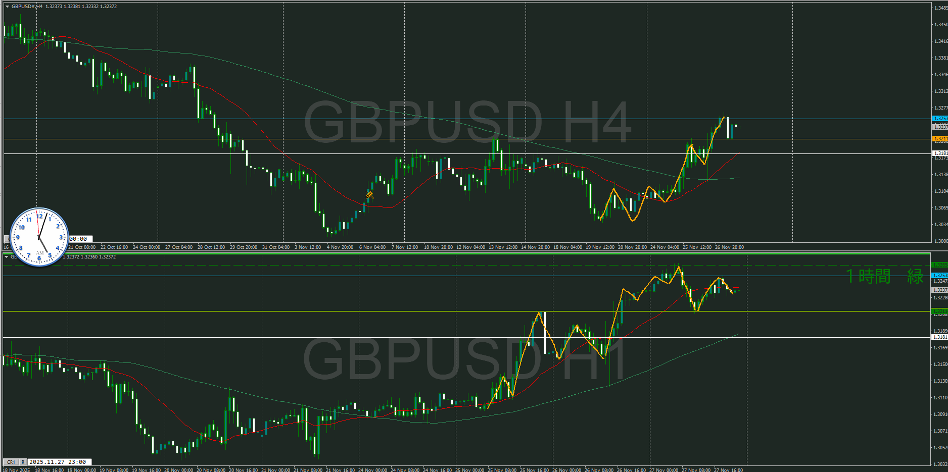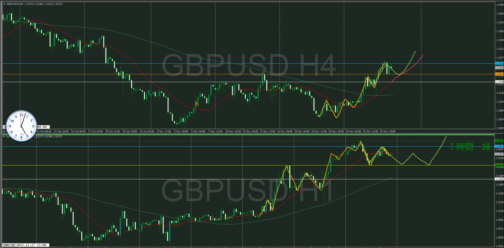 ポンドル 4時間の押し目買い ▲ (-_-メ)