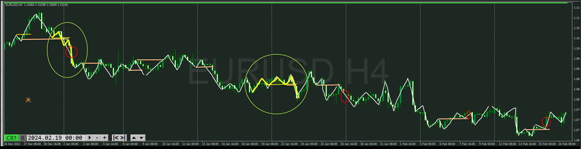 4時間では斜めの攻防ラインが視えるが割って来てからの戻り売り