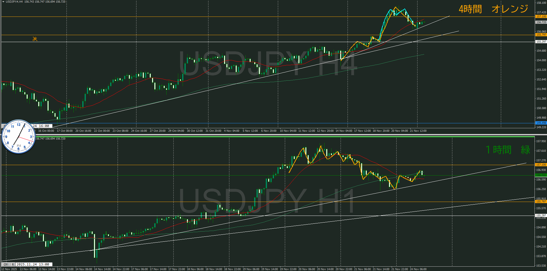 4時間で視える斜めの攻防ラインがキレイに効き過ぎている