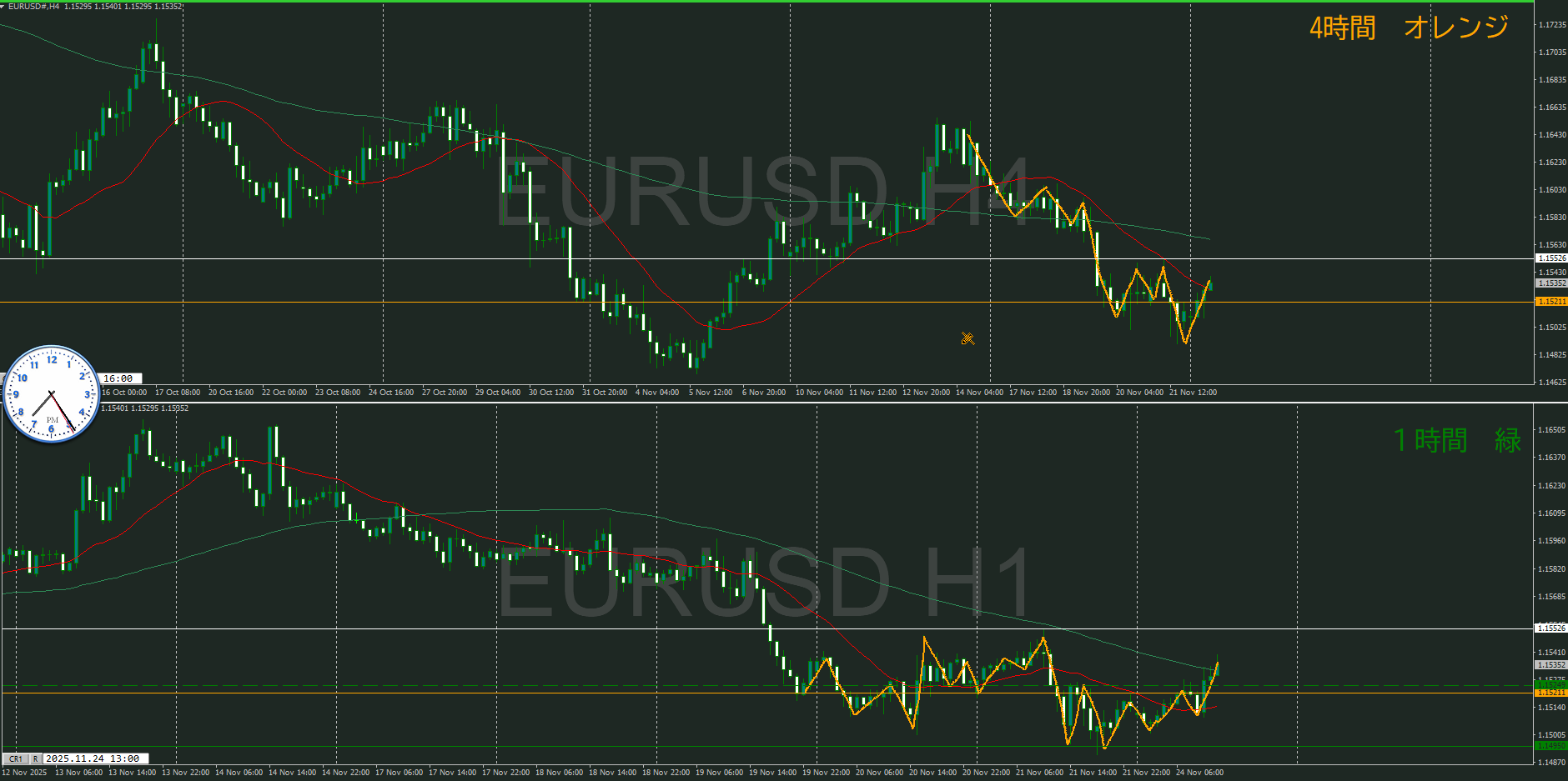 4時間の調整が終わったら売りを考えたいところだが、1時間で下落トレンドが発生すると売りを検討できるのか