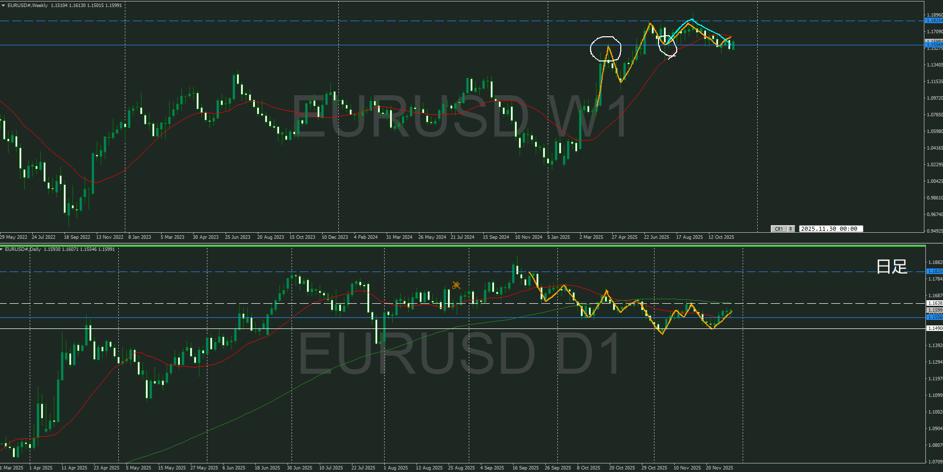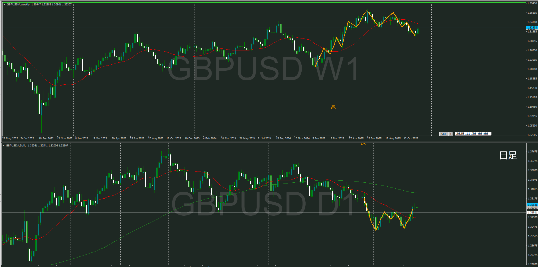 週足VS日足が続いているので、キレイな示唆を待ちたい