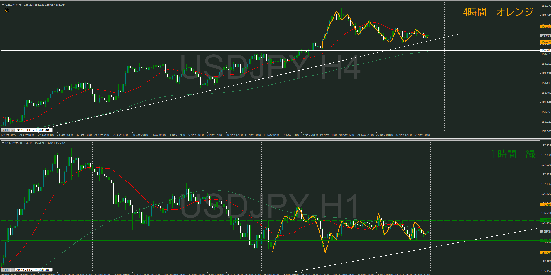 日足は中途半端なところで動きが重くなっているが、やはり斜めが意識されているのだとろうか