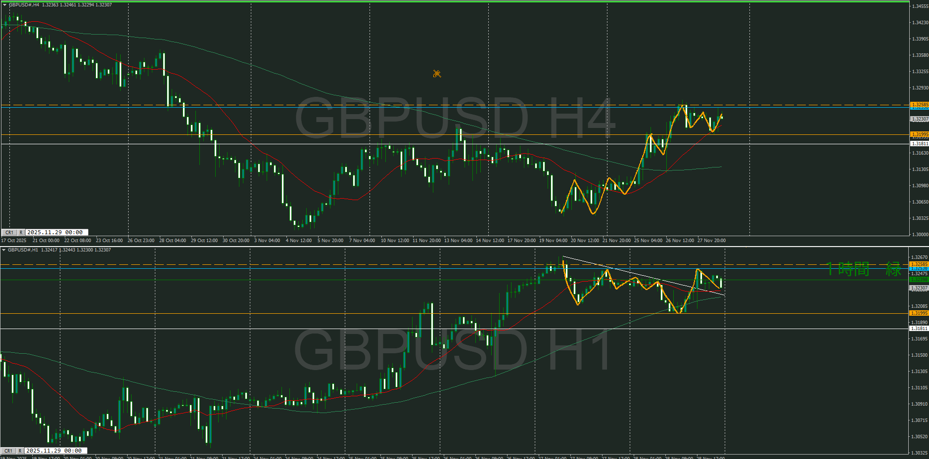 【1時間】方向 一旦下落したが、再上昇し押している波の途中