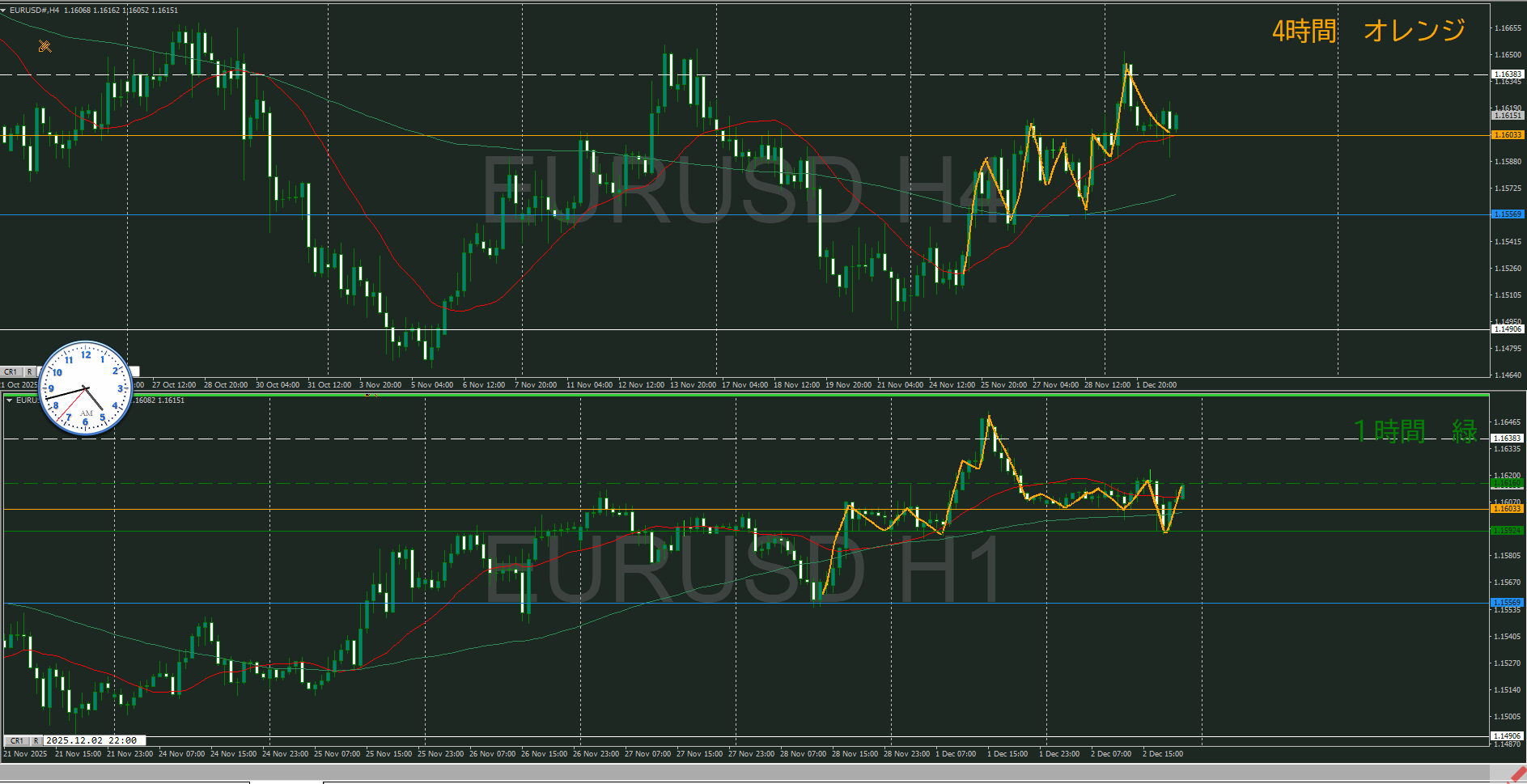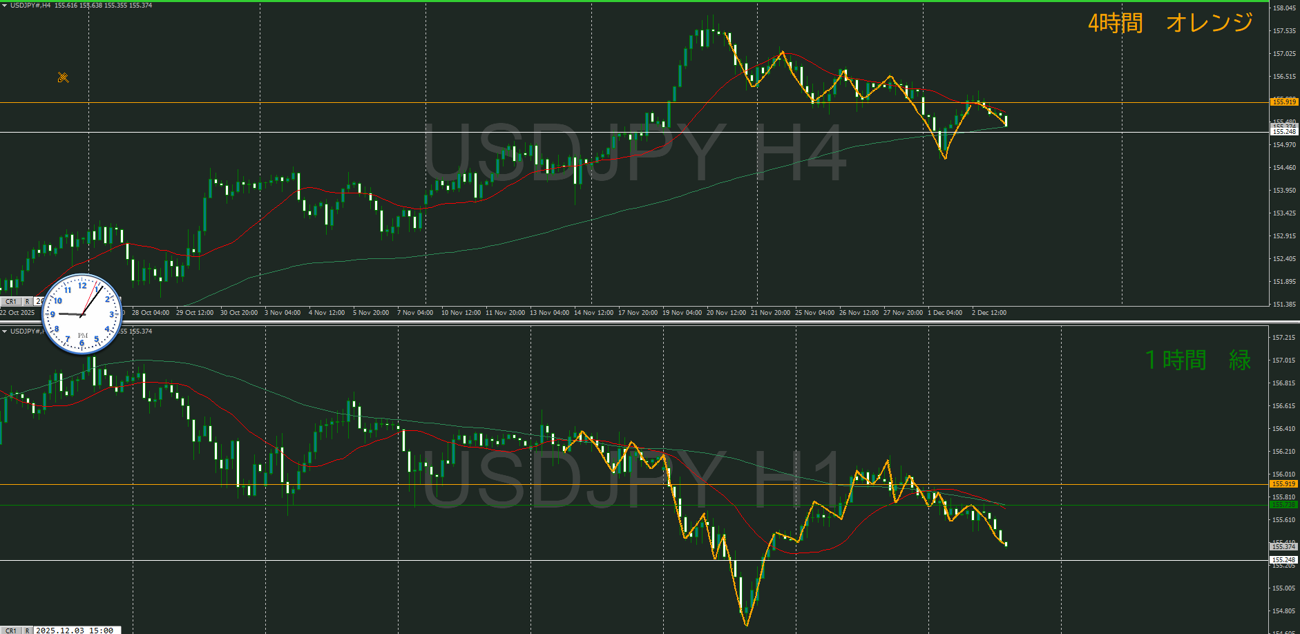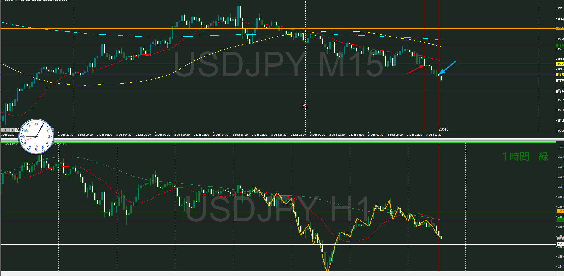 【1時間】 方向 下 二番を付けて下落している波の途中