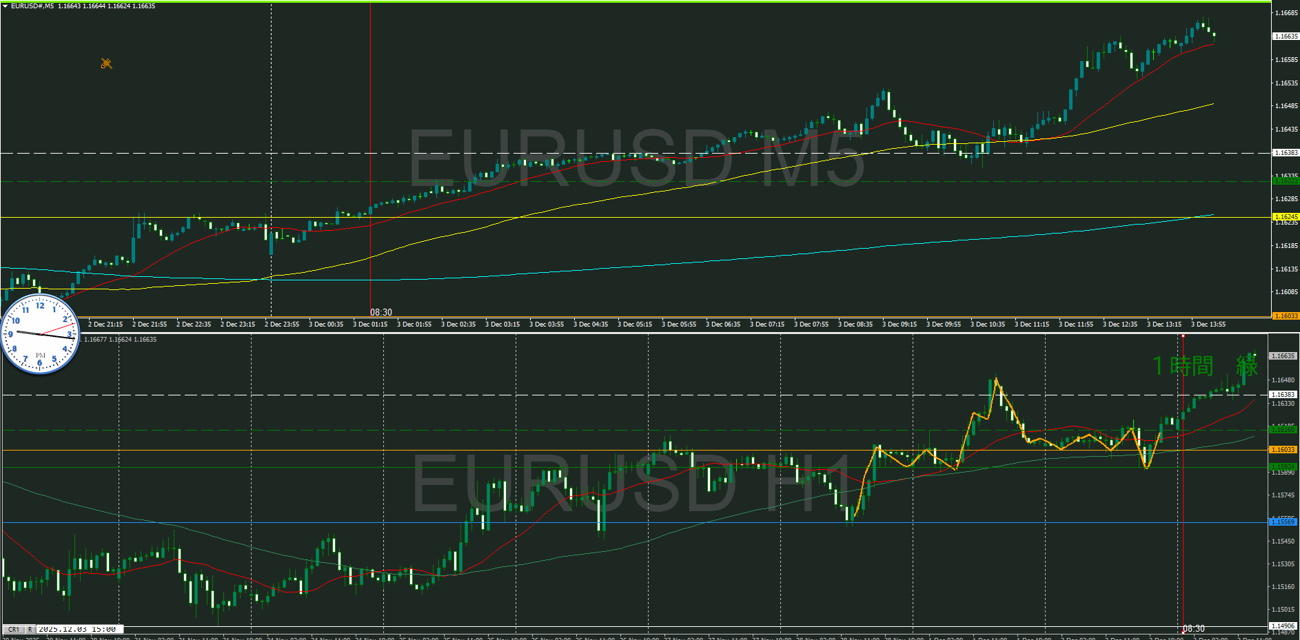 朝の8時30分にエントリポイントが来ていたんですが、ユロドルを朝から入るのは、抵抗があり入らなかった