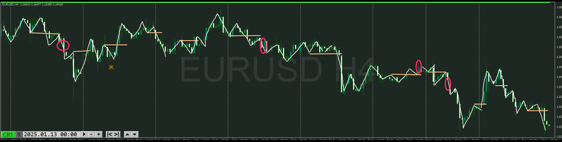 4時間の白いラインが日足の押しとすれば、早すぎる