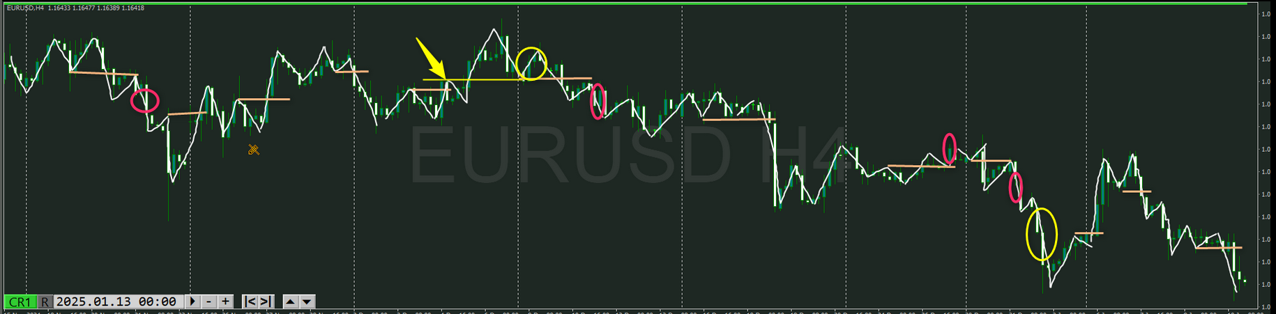 【4時間方向 上 二番を付けてトレンド転換シグナルが出たところ