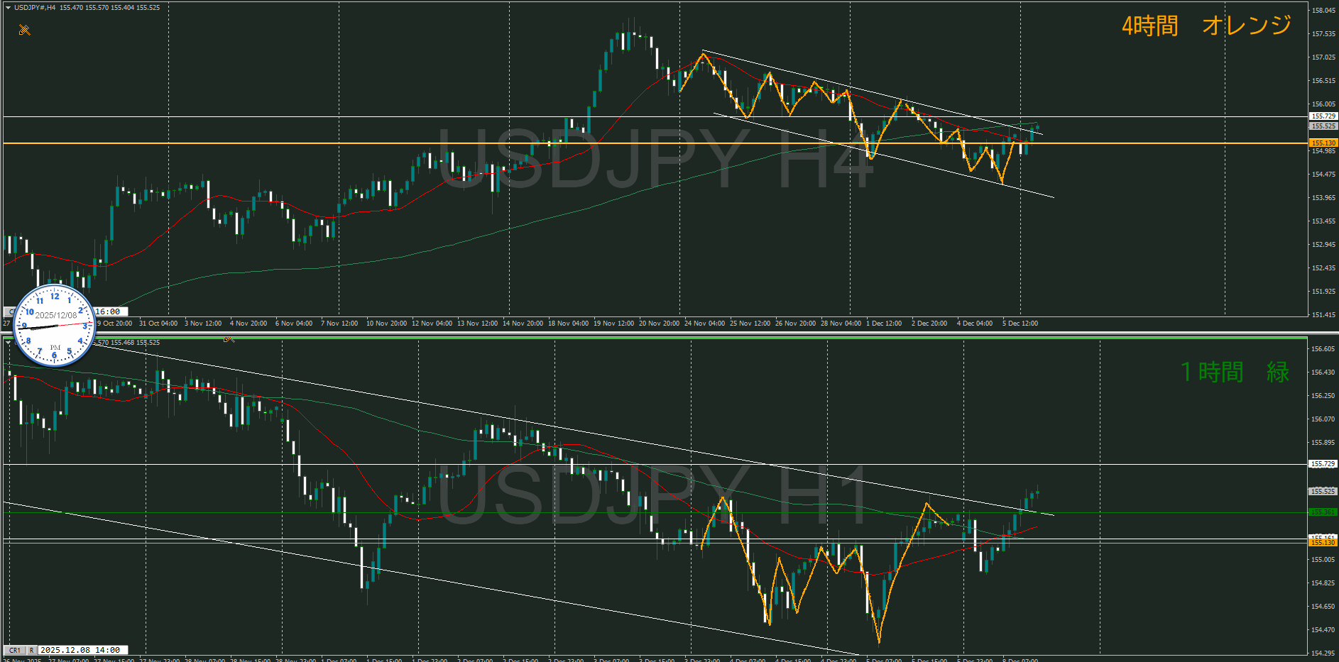 4時間では買い優勢なんだけど、週足VS日足の状況は続いている