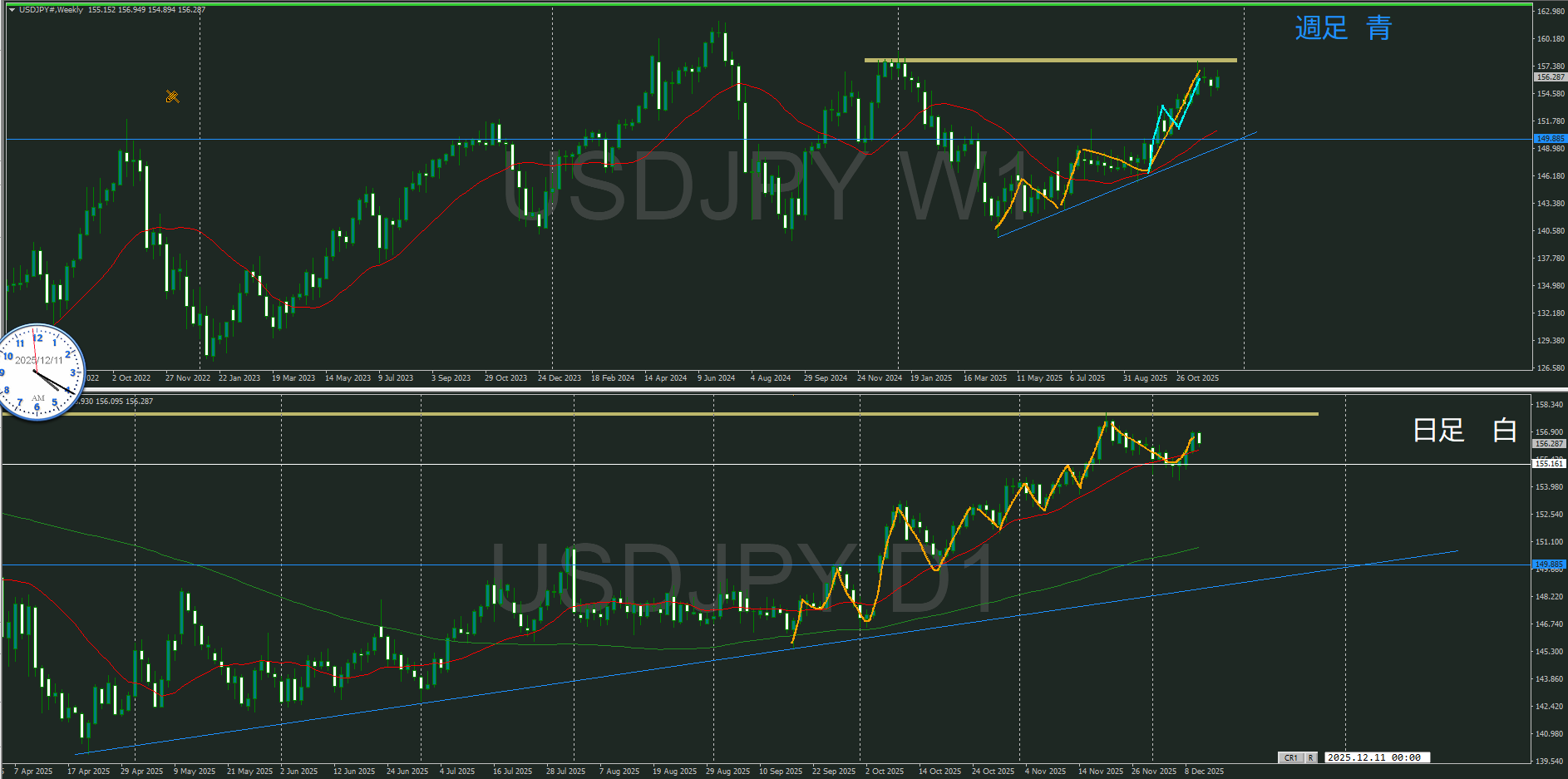 週足VS日足がまだ終わらないのでキレイな示唆が現われない限り荒れやすいと思われる