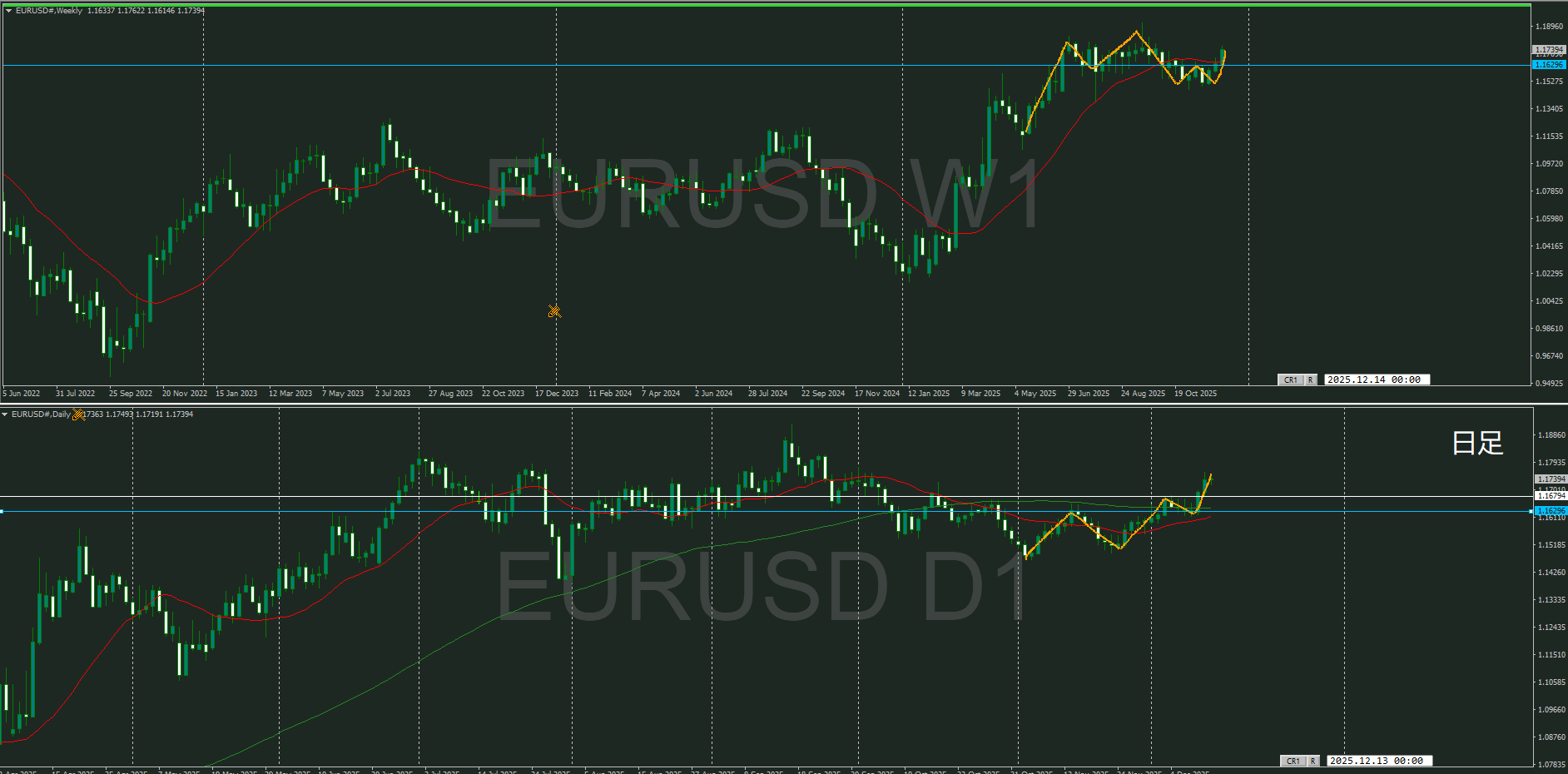 週足MAも微妙に超え買い支えられている