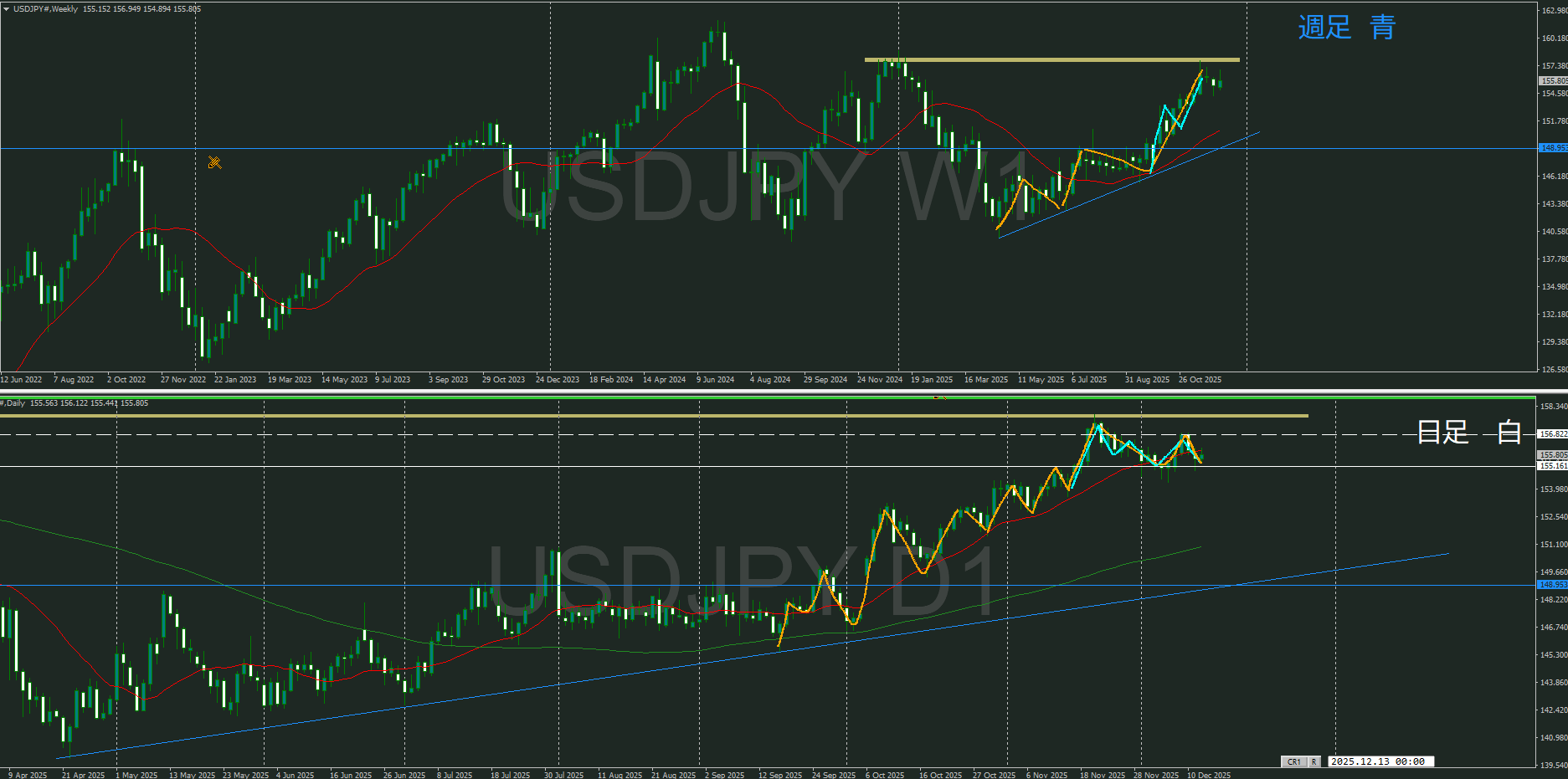 【週足】方向 上 上昇の寝身の途中
