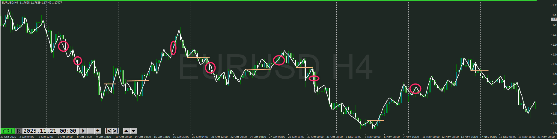【4時間】方向 上 小さく押しを付けて上昇の波の途中