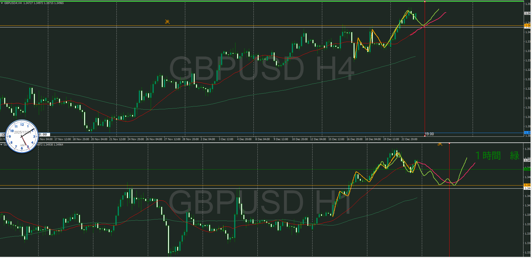 4時間としては足が早いので、1時間で動いている可能性と考えると1時間の押し目買いを待ちたいところ