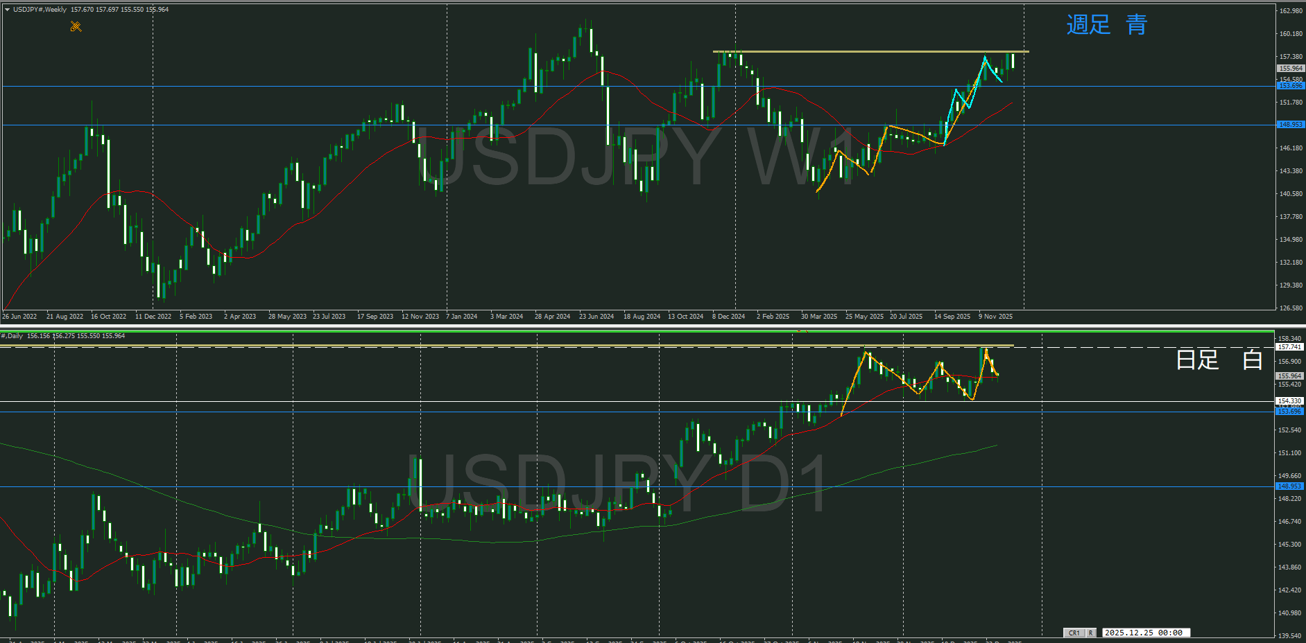 どちらにしても、月足クラスの高値圏で意識されている様子が視えてている