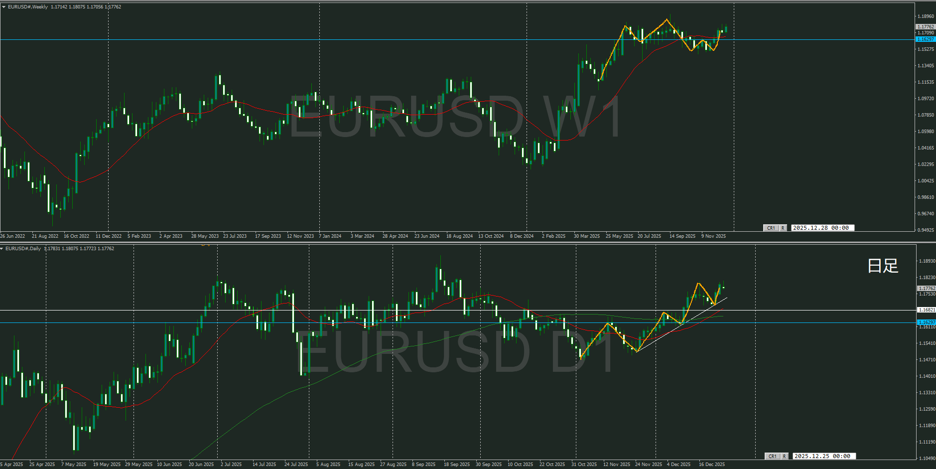【日足】方向 上 押し目買いが入って上昇の波の途中