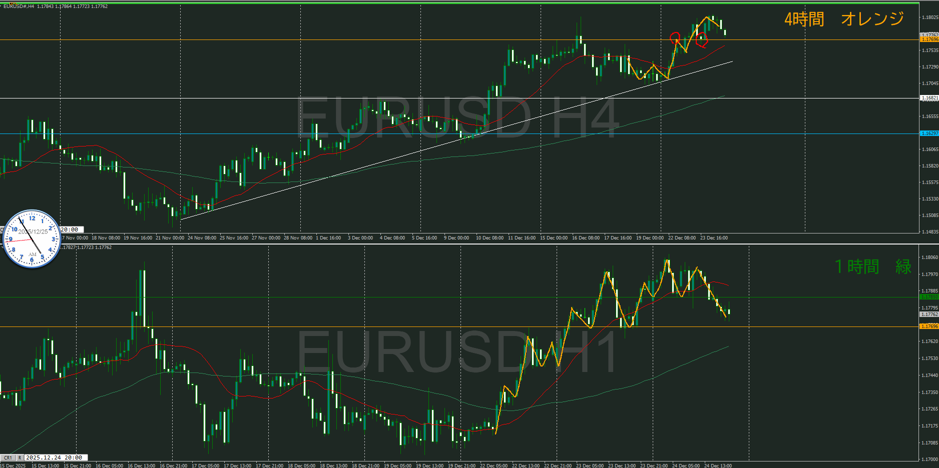 ユーロドル 4時間の押し目買いを待ちたいところ
