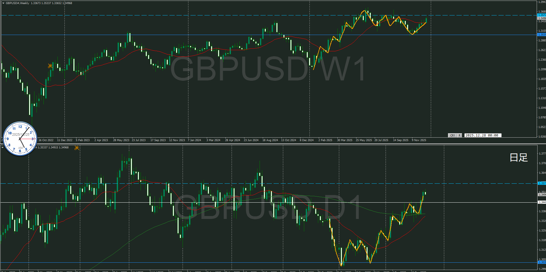 日足、半値付近でMAに支えられているので、4時間の上昇トレンド発生を待ちたいところ