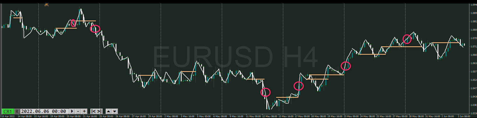 【4時間】方向上 トレンド転換シグナルが出て上昇の波の途中