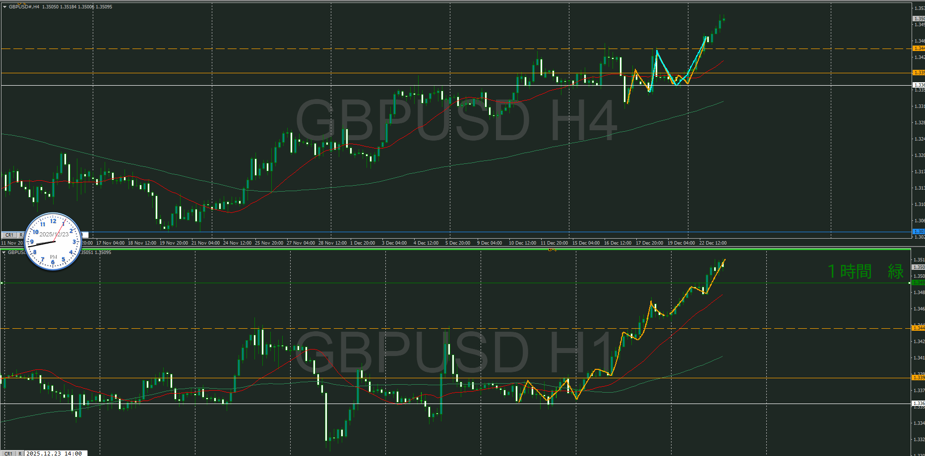 【4時間】方向 上 or 下? 押し始めた波の途中
