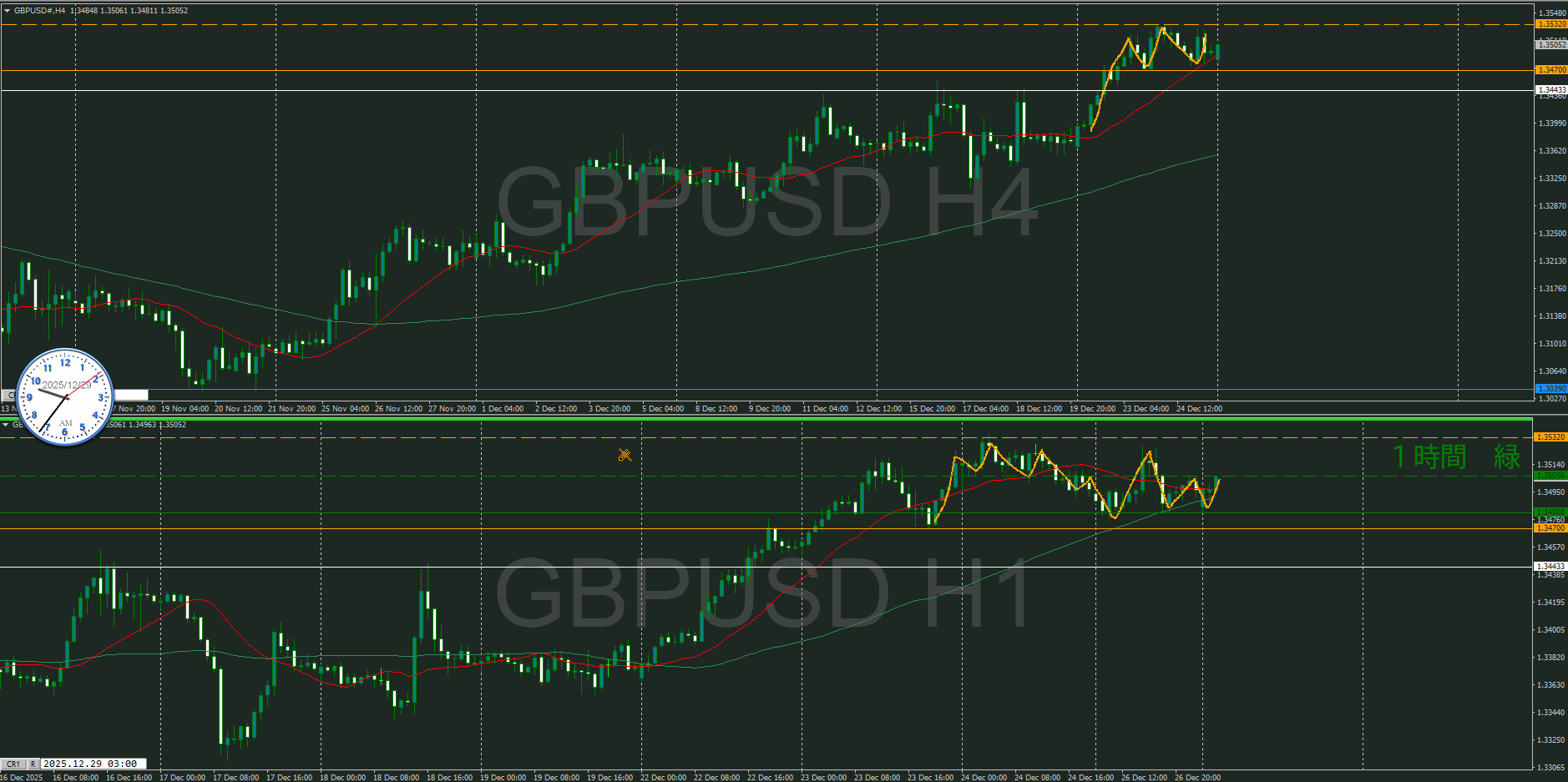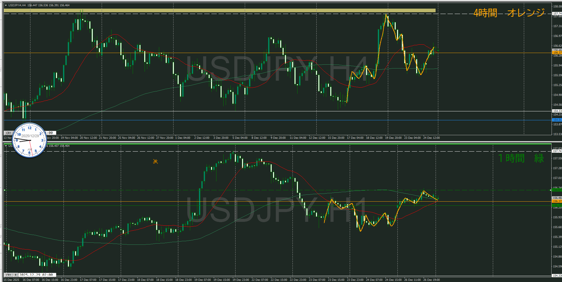 MAは下向きから水平になりはじめたところで、4時間のMAと合わせると買支えとして機能する可能性が視えてきた