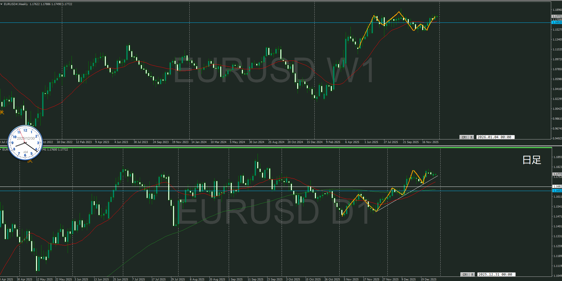 MAはレートの中を下向きで推移しているので、流れは売りが強い