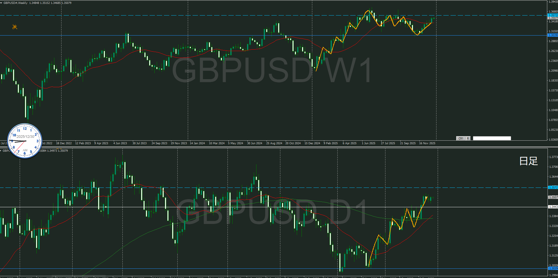 ポンドル 1時間次第で押し目買いを狙う ■ (-_-メ)