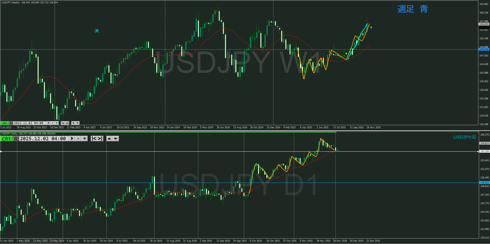 日足 方向上 押している波の途中