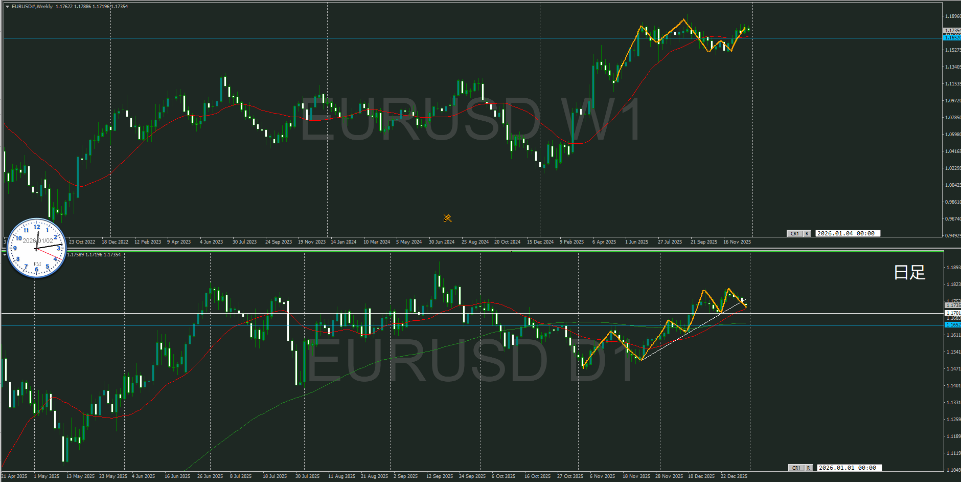 ユーロドル 簡単には売りとは言えないが、売り目線で静観 ■ (-_-メ)