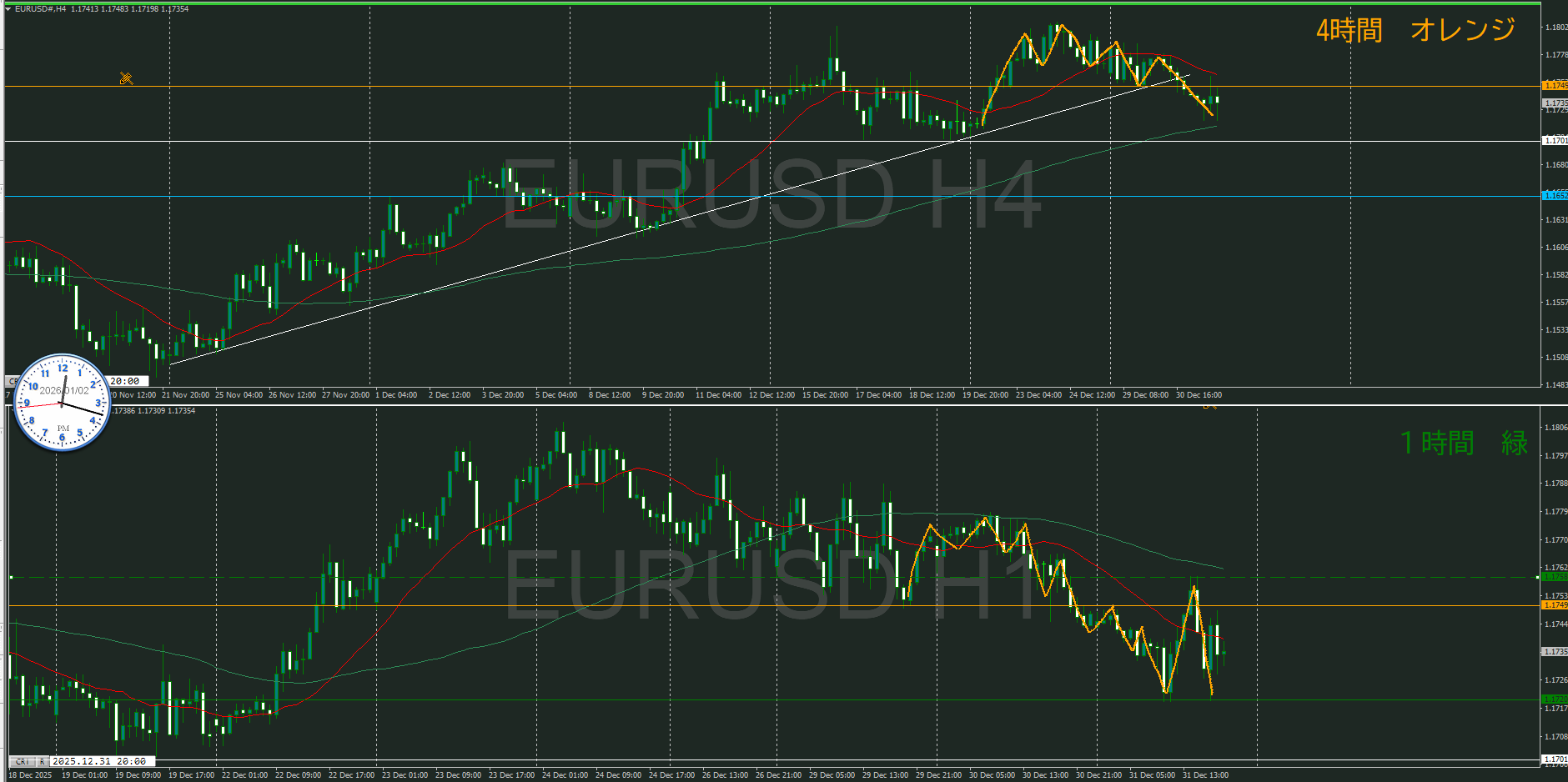 【4時間】方向上 トレンド転換シグナルが出て上昇の波の途中
