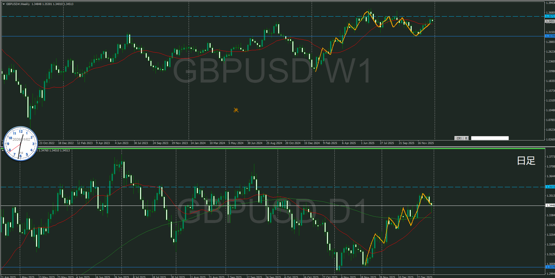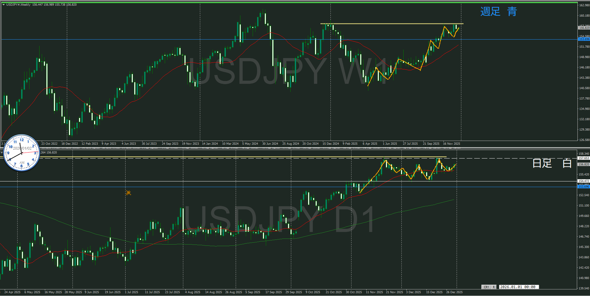 週足と日足の関係を視ると、日足が止められてきているので上が重くなっているのがわかる