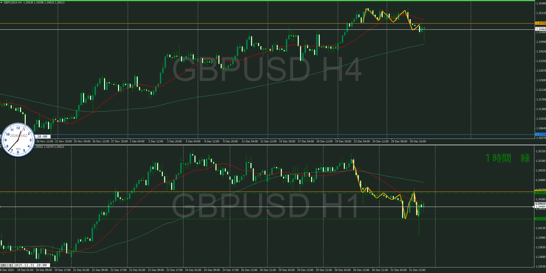 丁度4時間のMAも降りて来ているのでグランビルしてくると売り易い