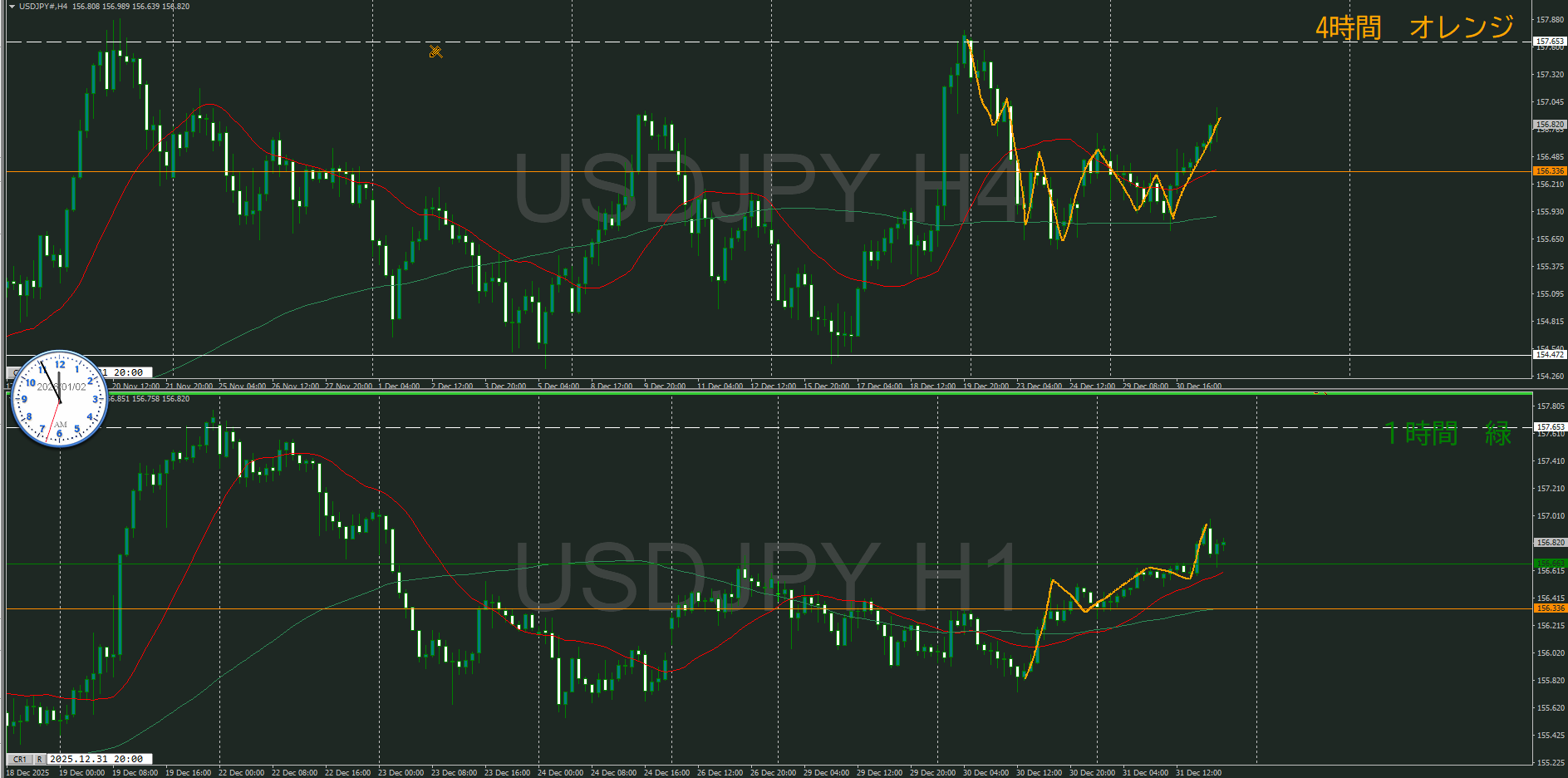 4時間で日足MAを視ると、ヒゲで荒れているところを視ると意識されていると思われる