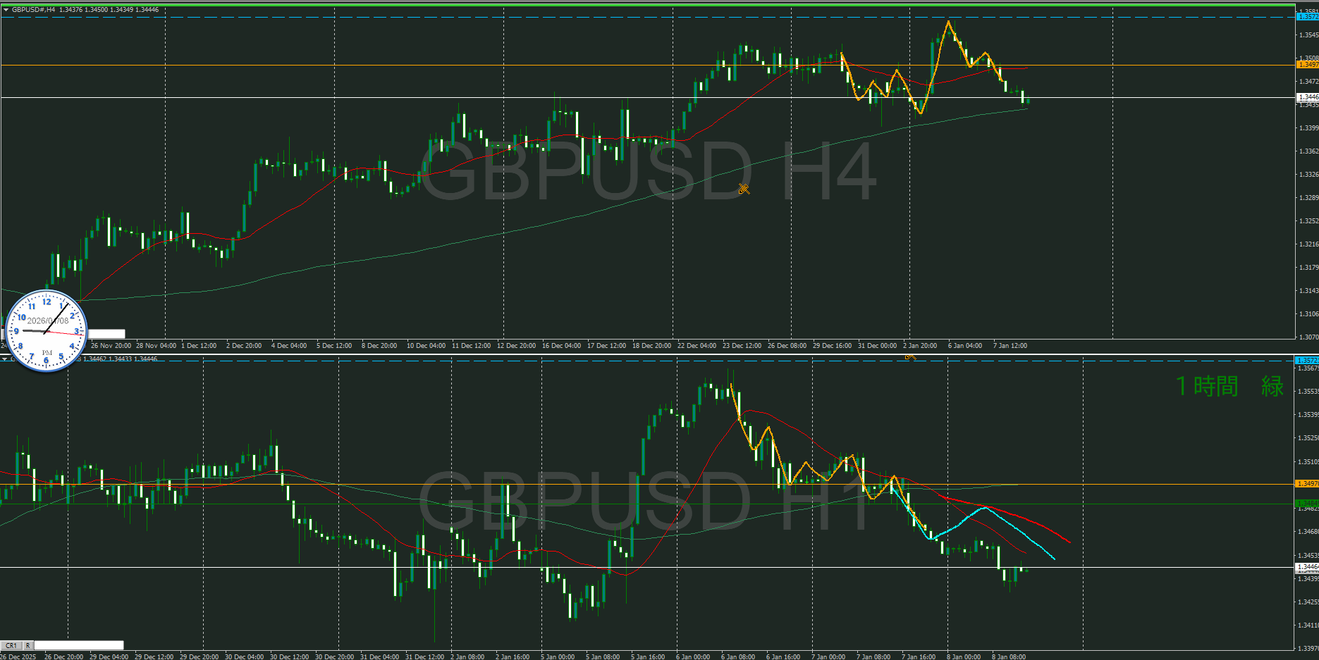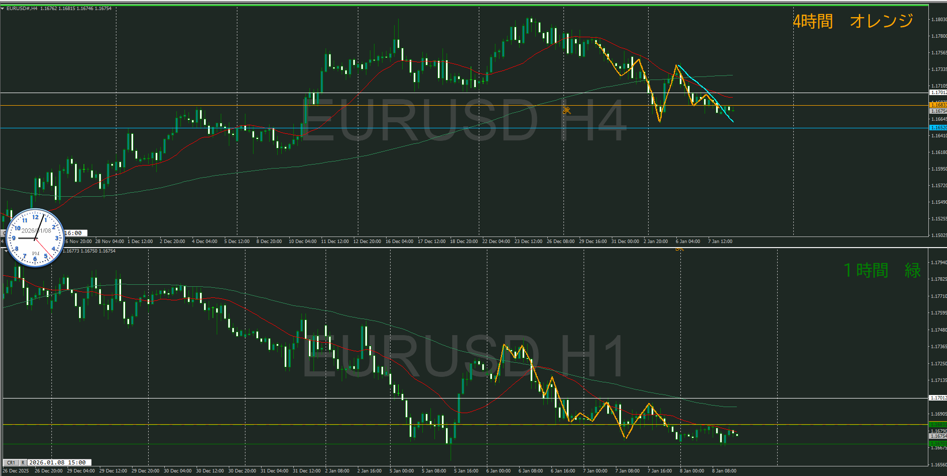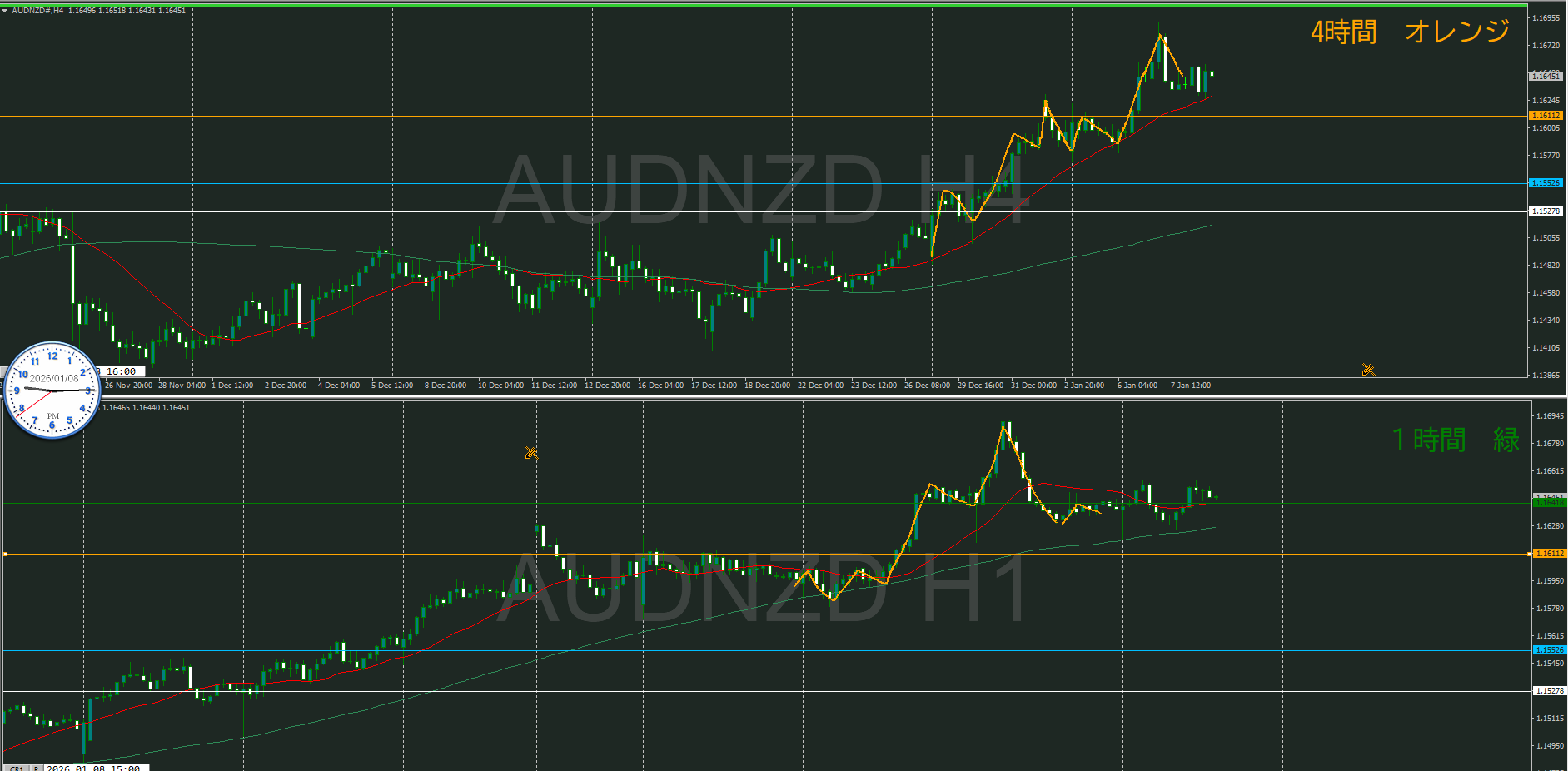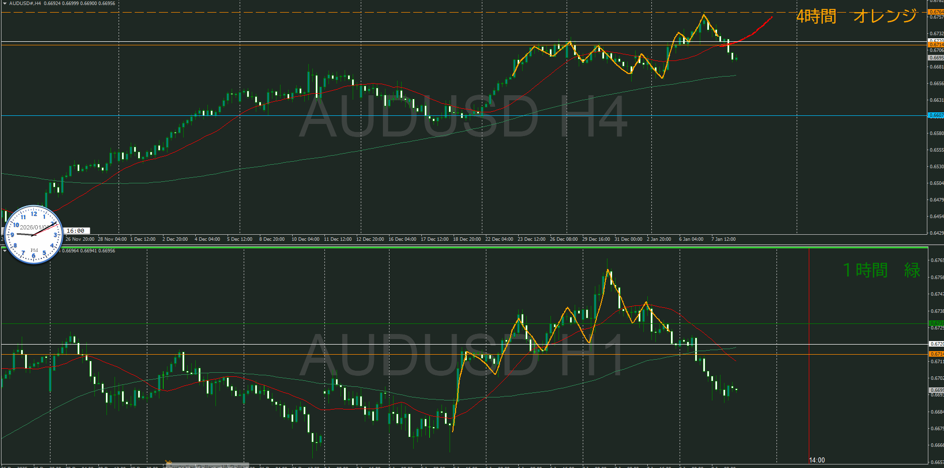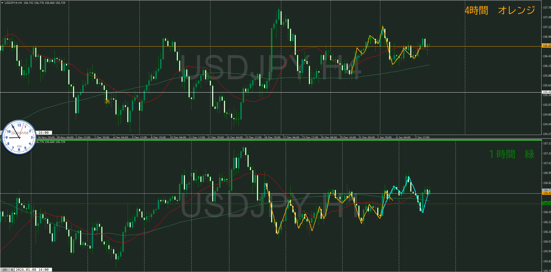4時間、中断持ち合いからの1時間上昇トレンド発生を待ちたい