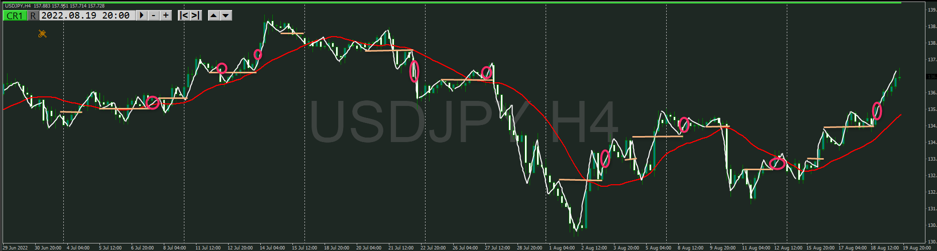 【4時間】方向 上 トレンド転換シグナルが出たところ