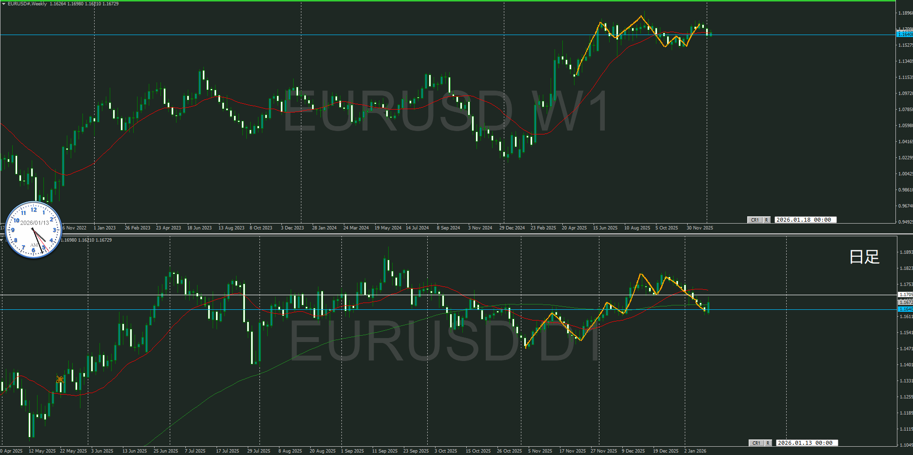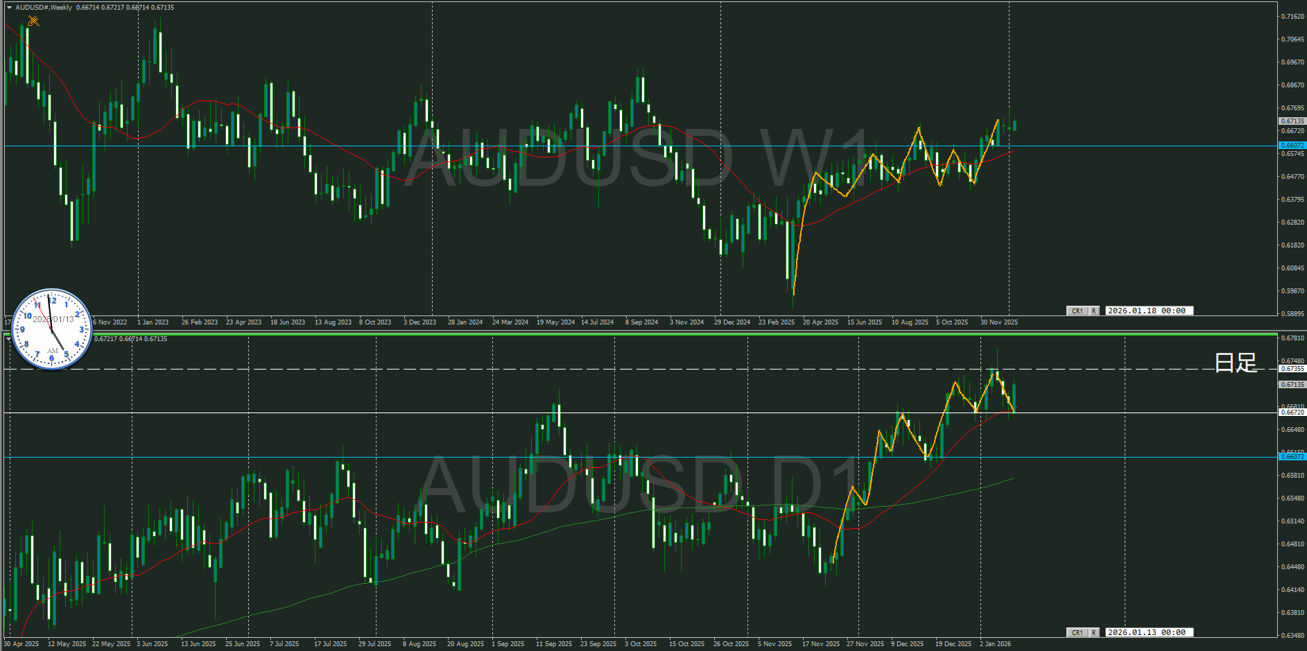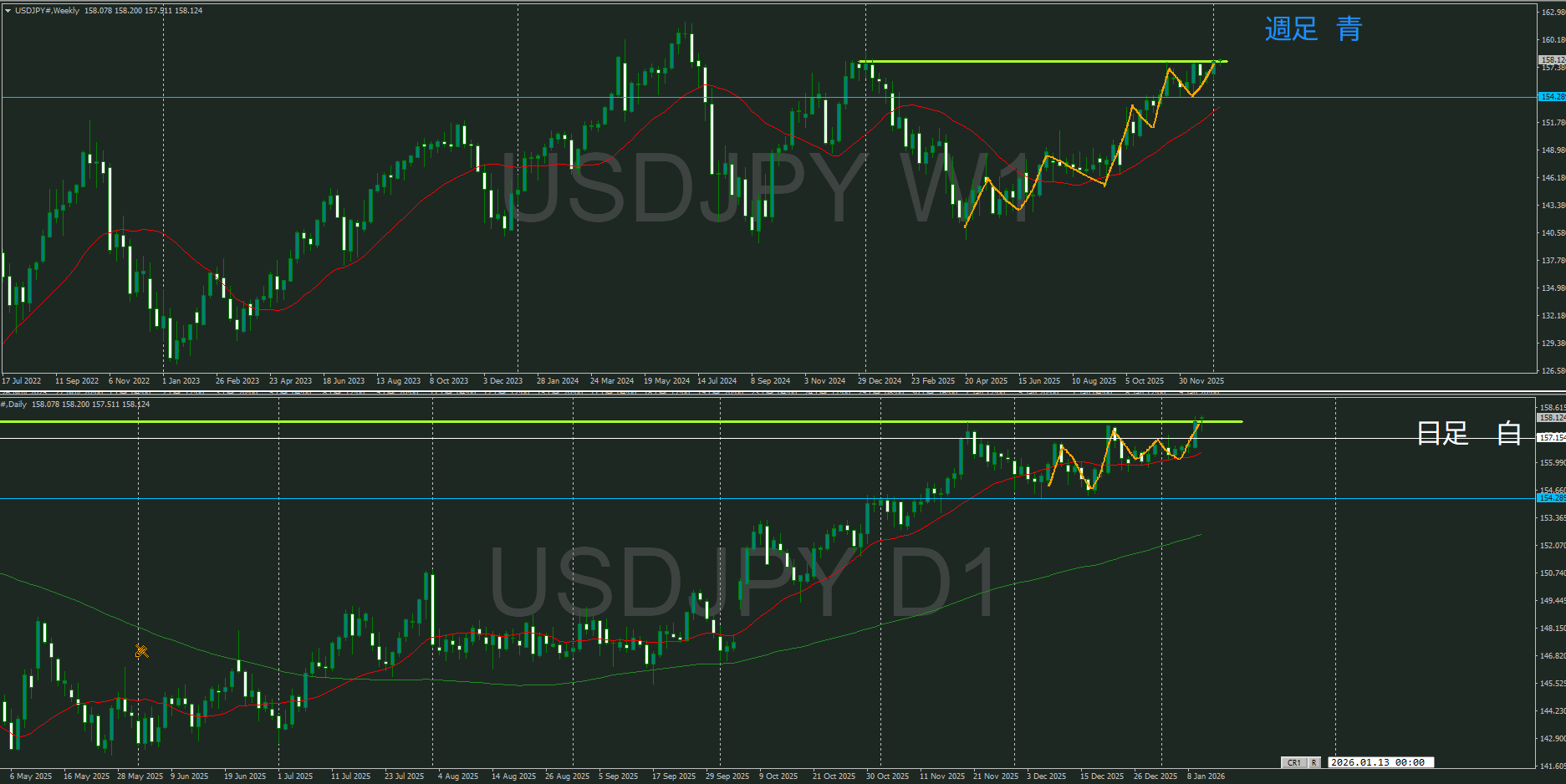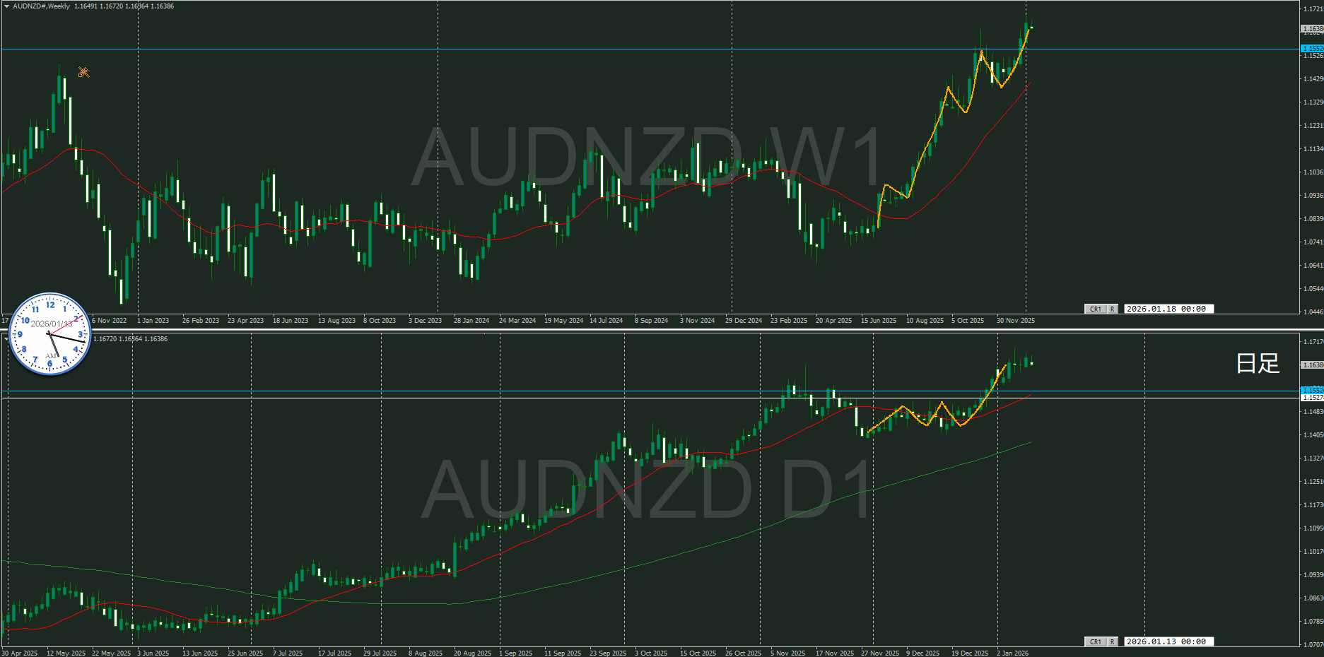 【週足】方向 上 水平線を割りはじめたが、明確ではない