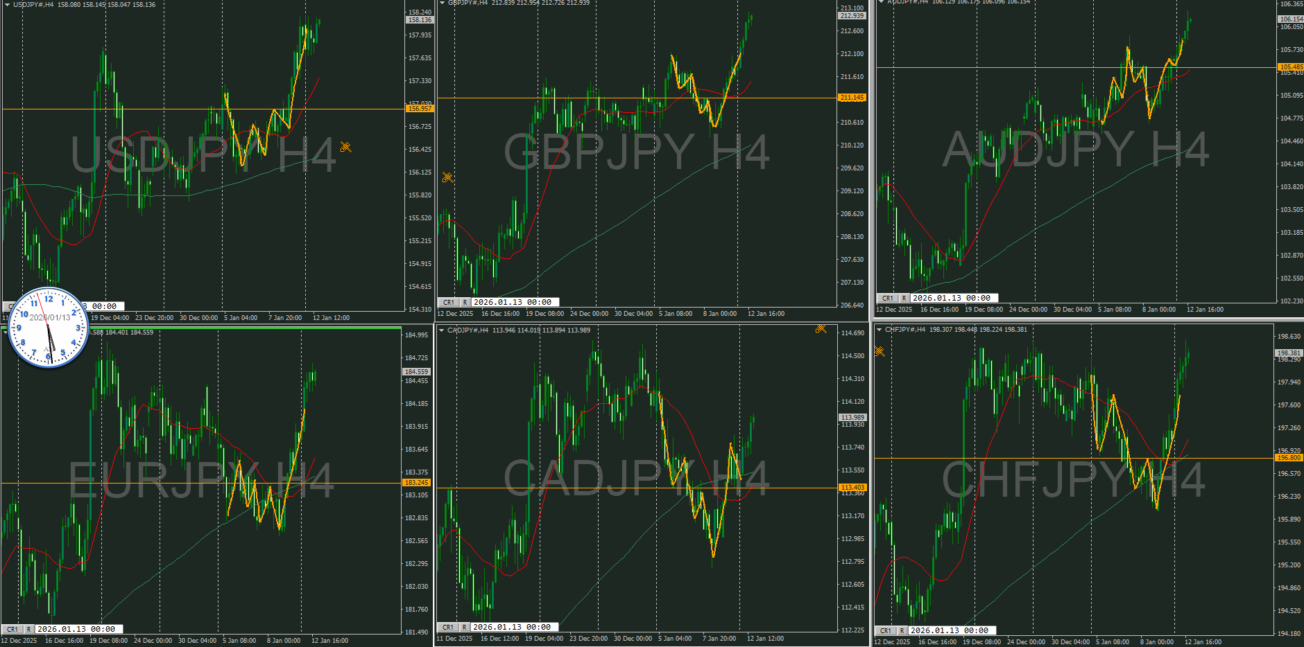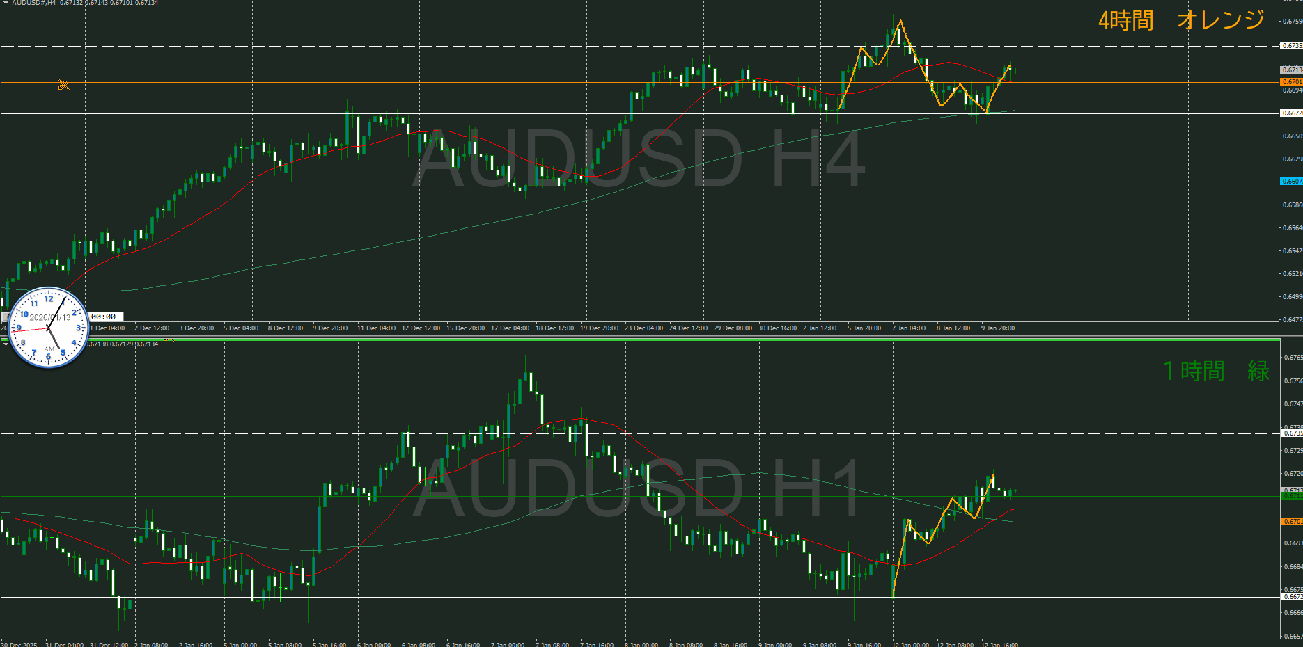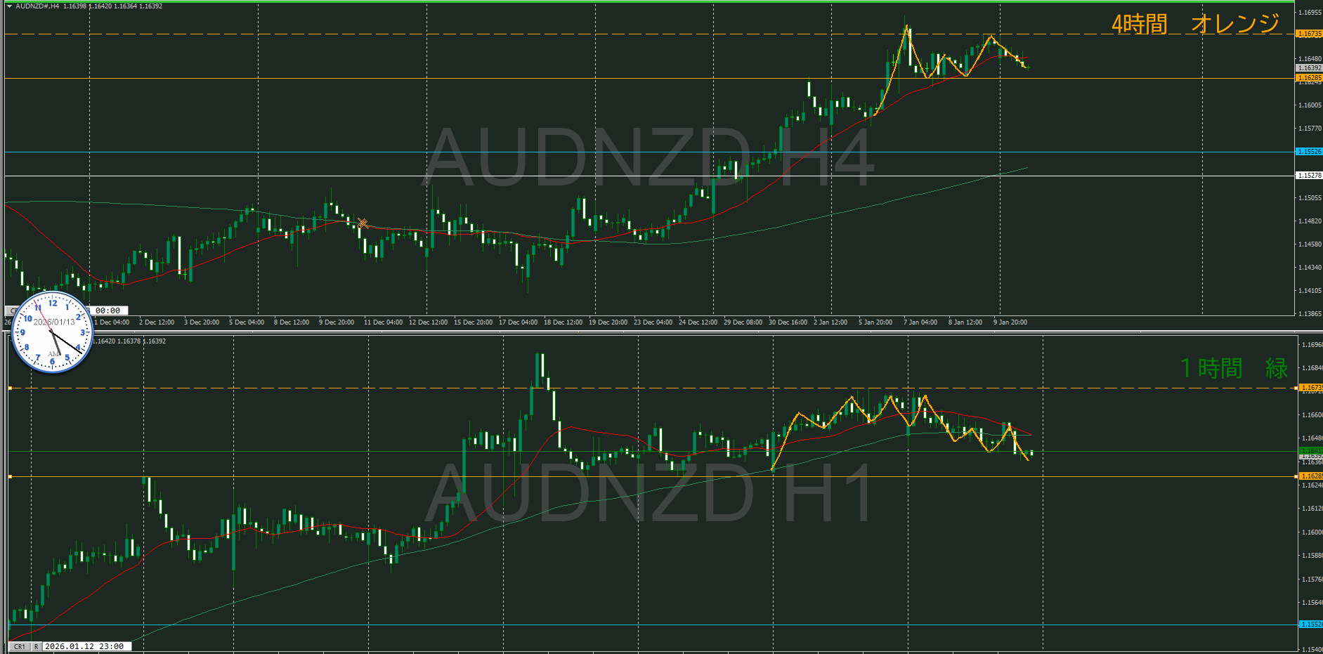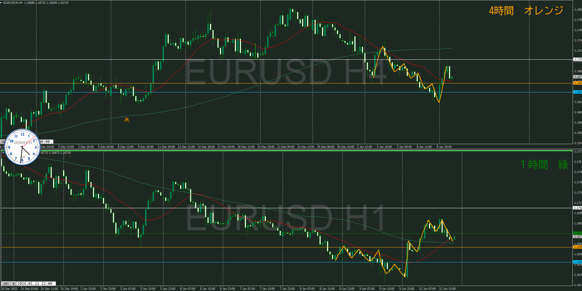 【4時間】方向上 トレンド転換シグナルが出て押し始めたところ