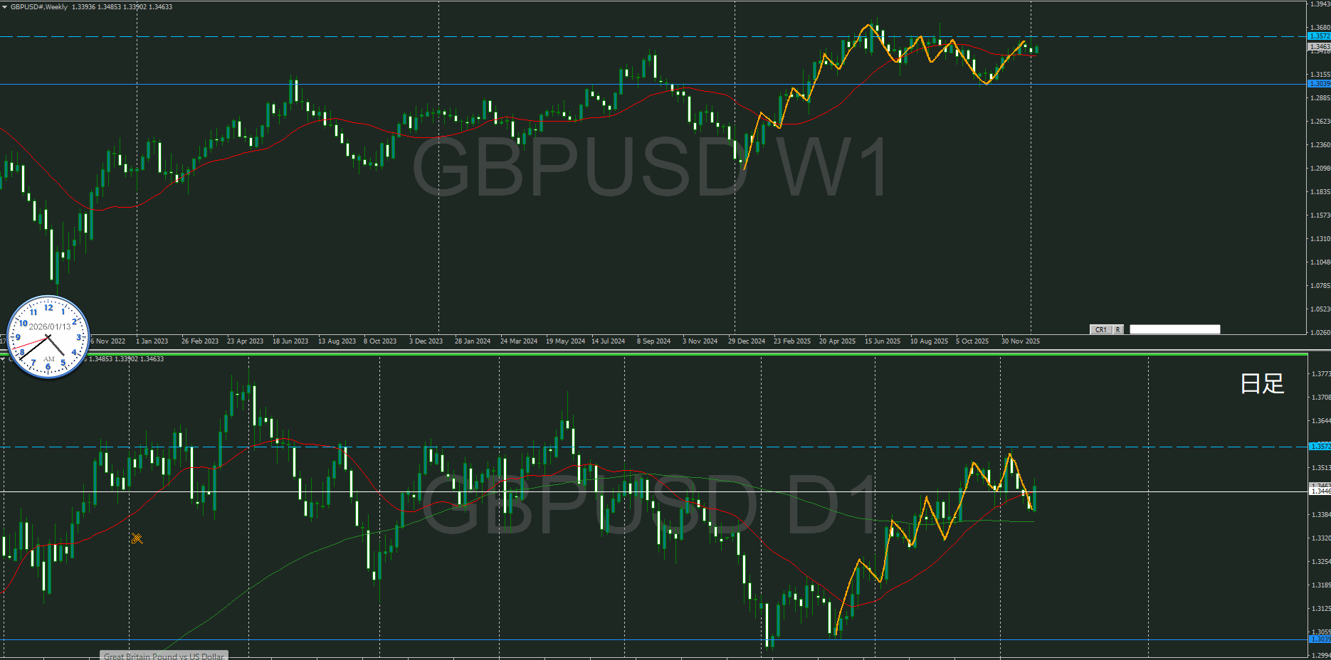 まだロウソク足が確定するまで2時間以上あるので、戻される可能性もあるが、MAを超えてきている