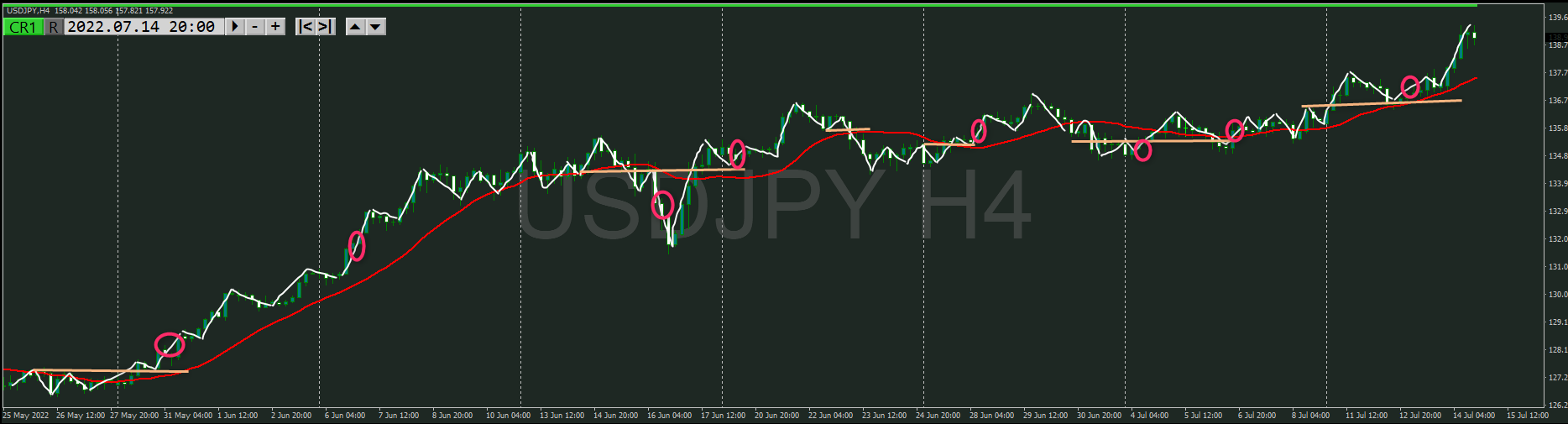 【4時間】方向上 トレンド転換シグナルが出たところ