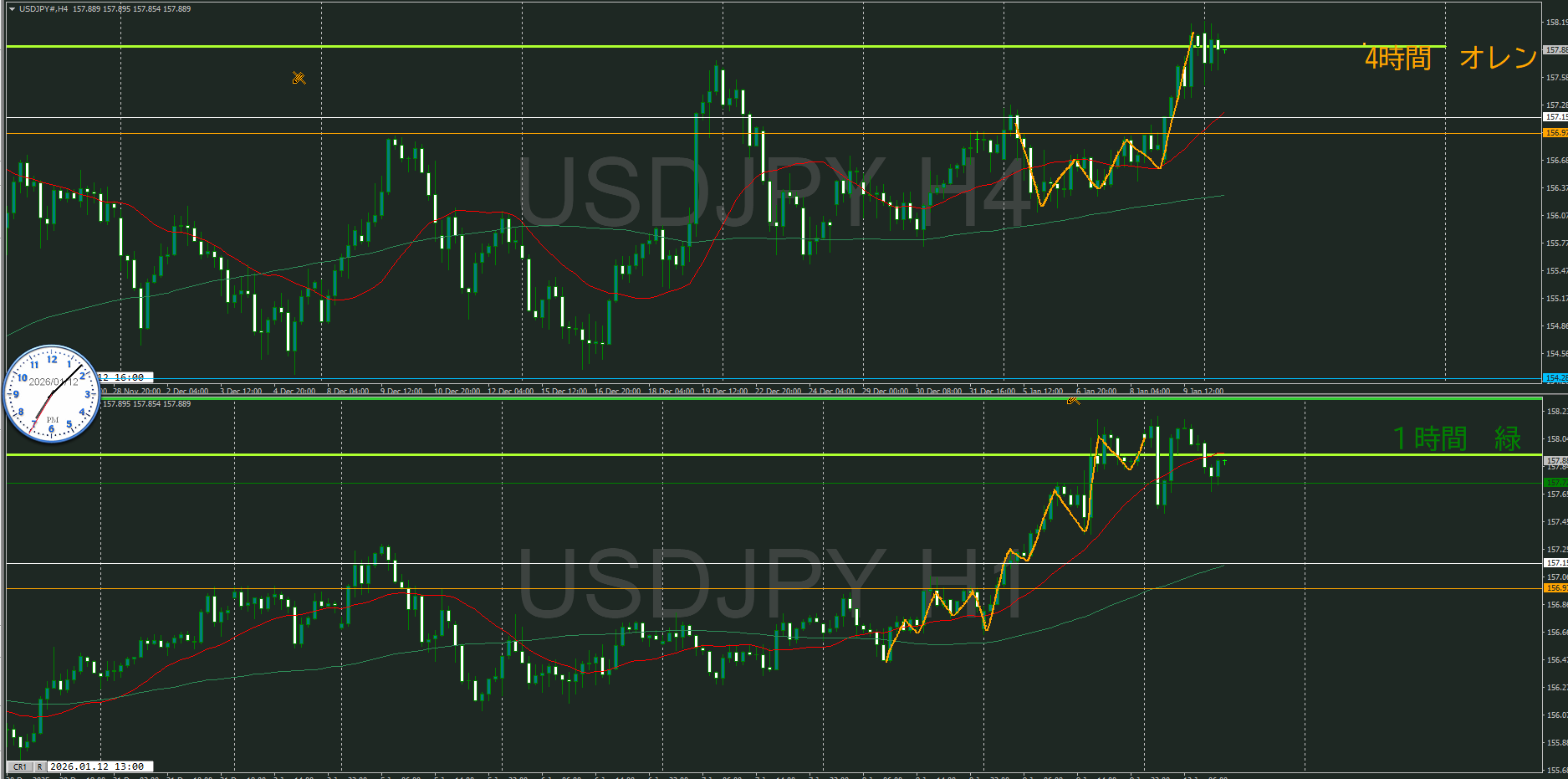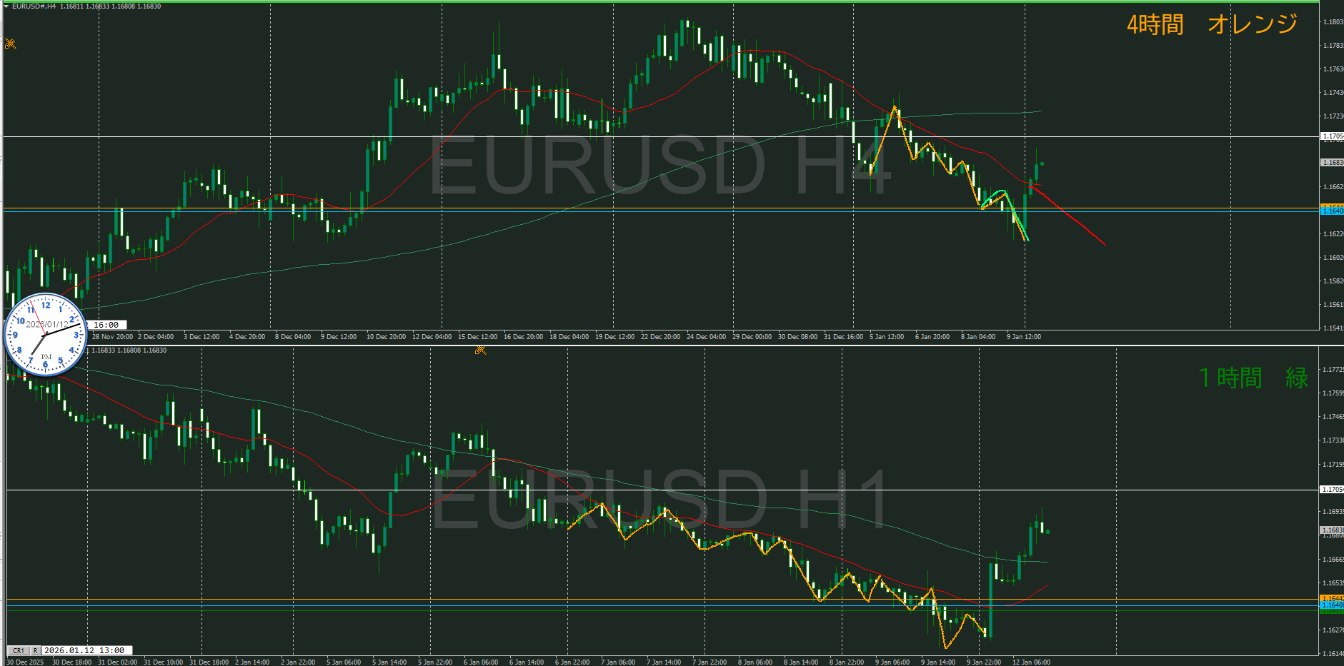4時間の押し目買いが見えてはいるけど、1時間を視ると何かちがう