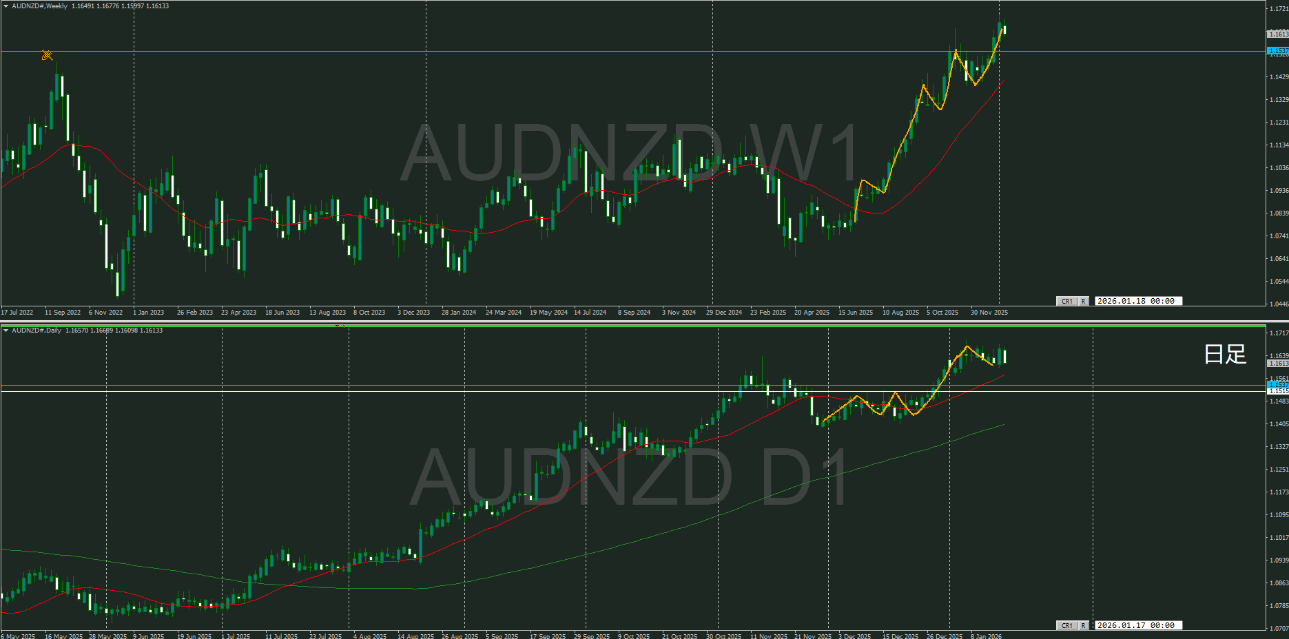 基本は買いを狙うが、日足で割ってくるようなことがあれば、週足の戻しを狙うのはありと思う