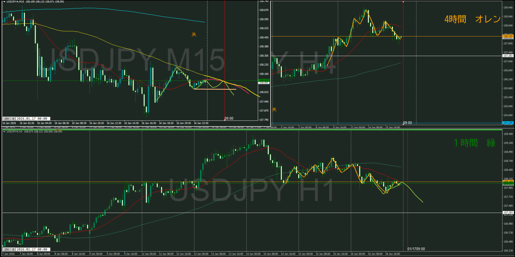 4時間でこのまま下落してくれば戻り売りを待つことになる