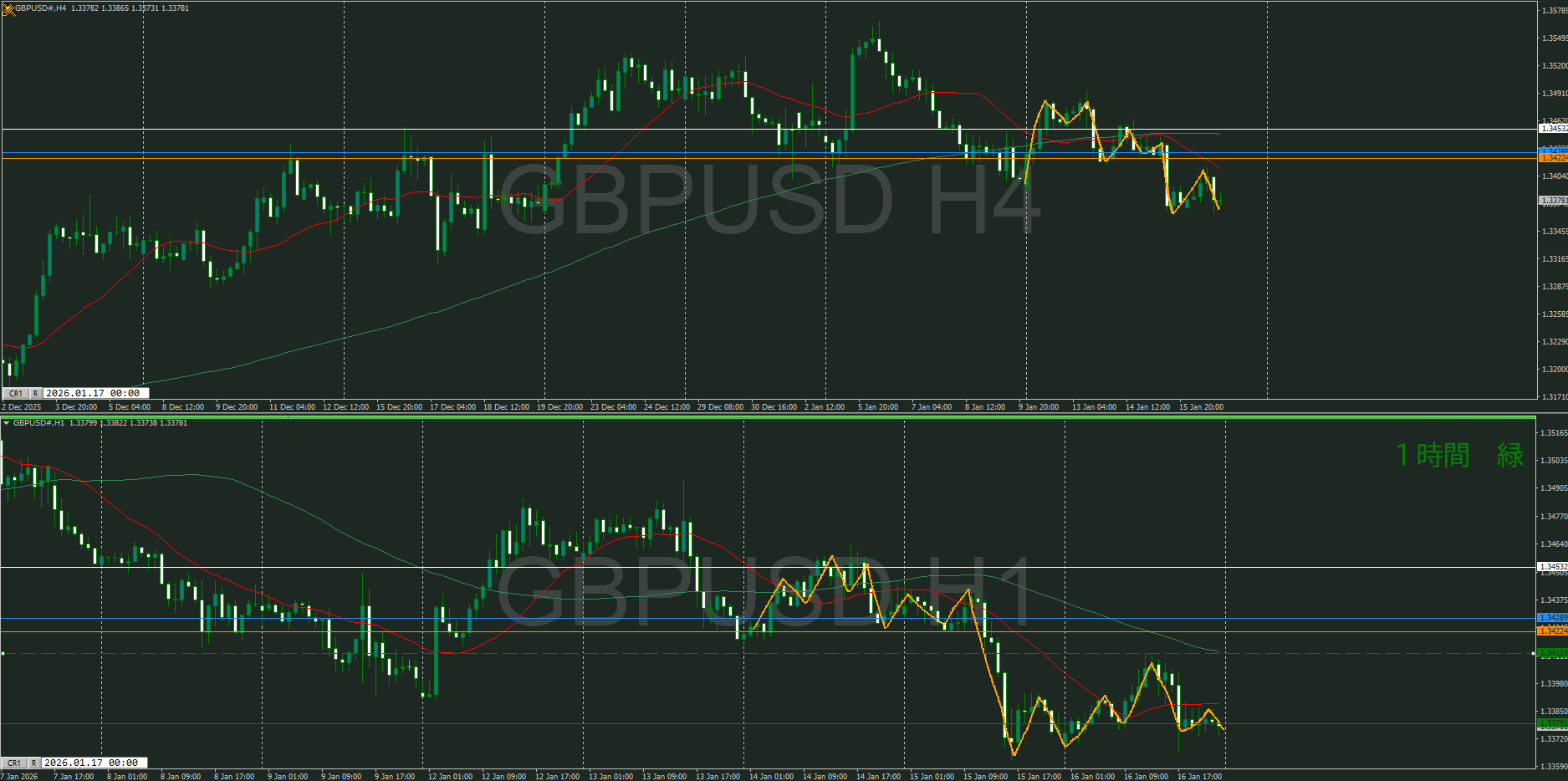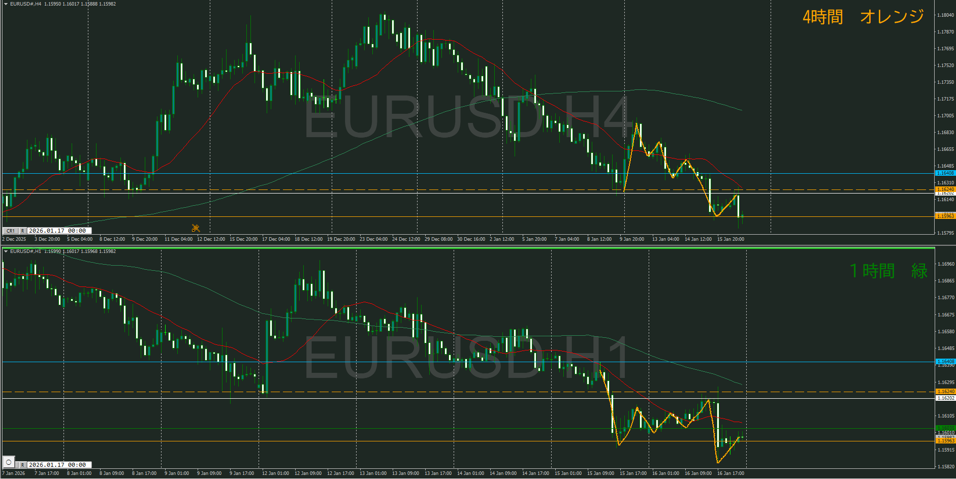 【1時間】方向下 下落の波が出て戻しているところ