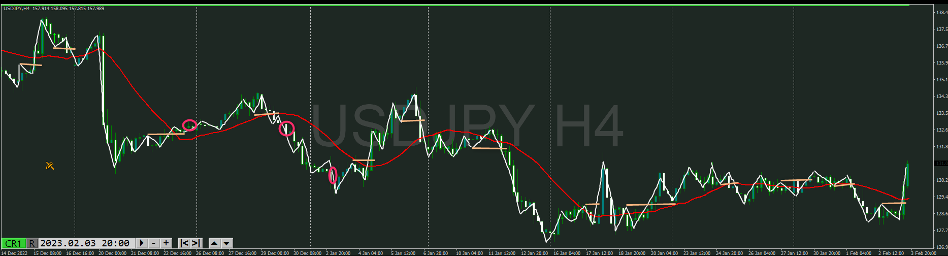 【4時間】方向上 トレンド転換シグナルが出たところ
