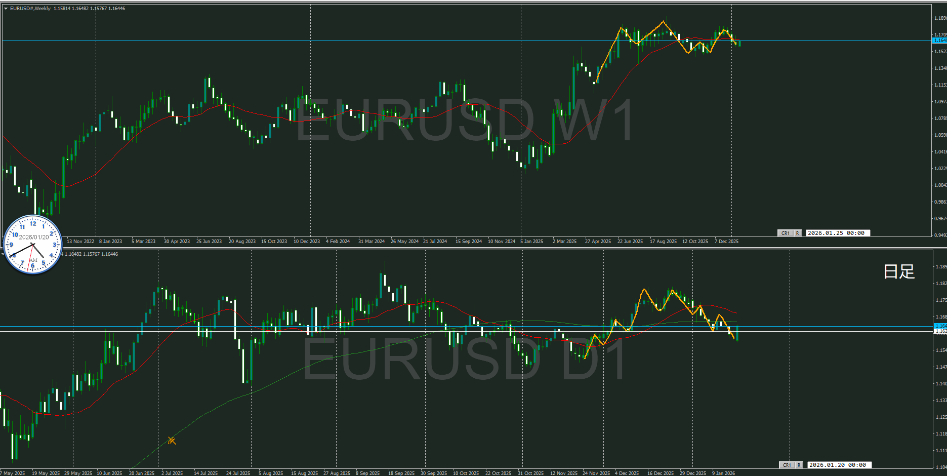 週足と日足MAに挟まれている状況