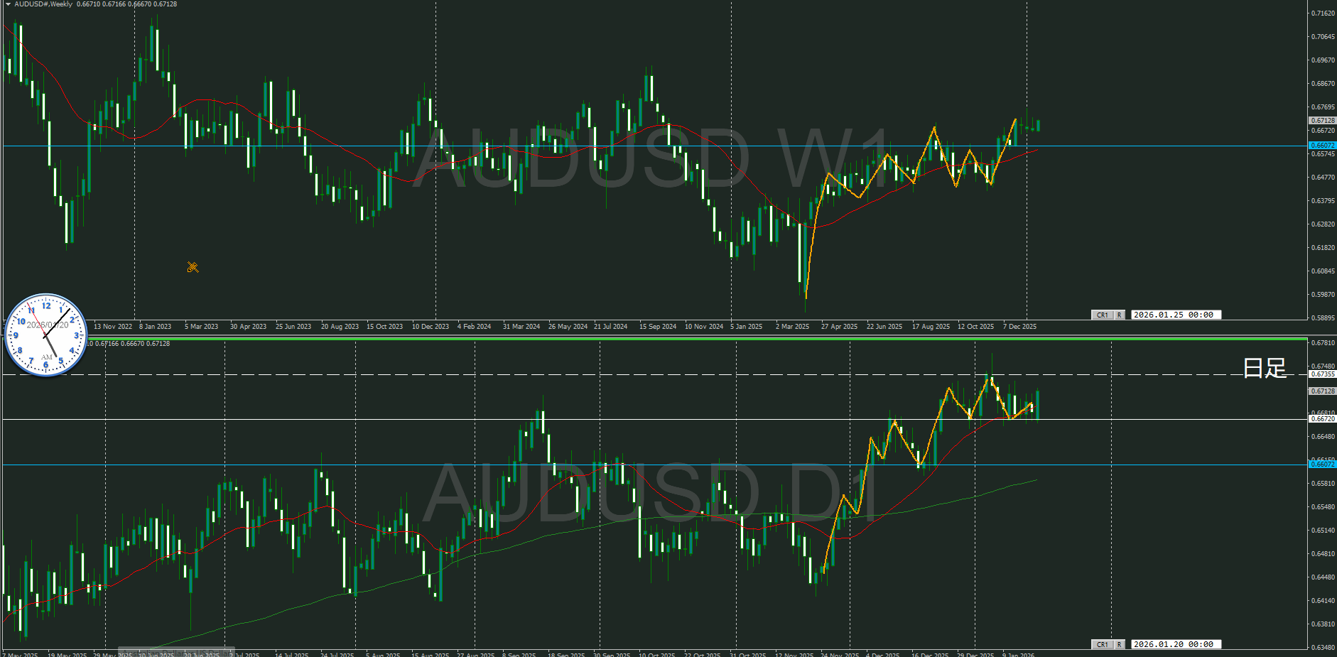 週足はトレンド継続するのか焦点になって来ているので、この高値でどうなるのか