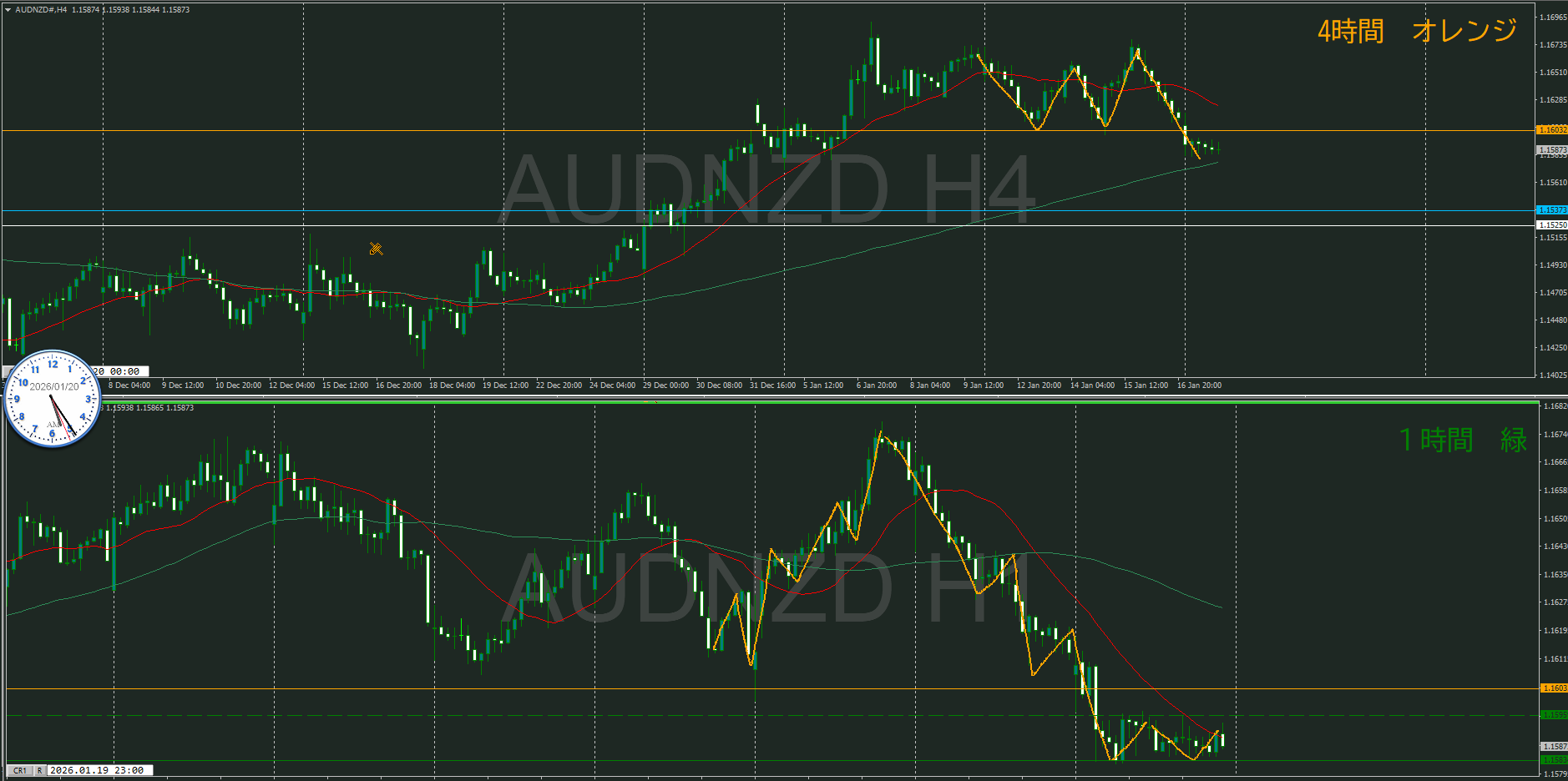 【1時間】方向上 上昇の波から押し始めたところ