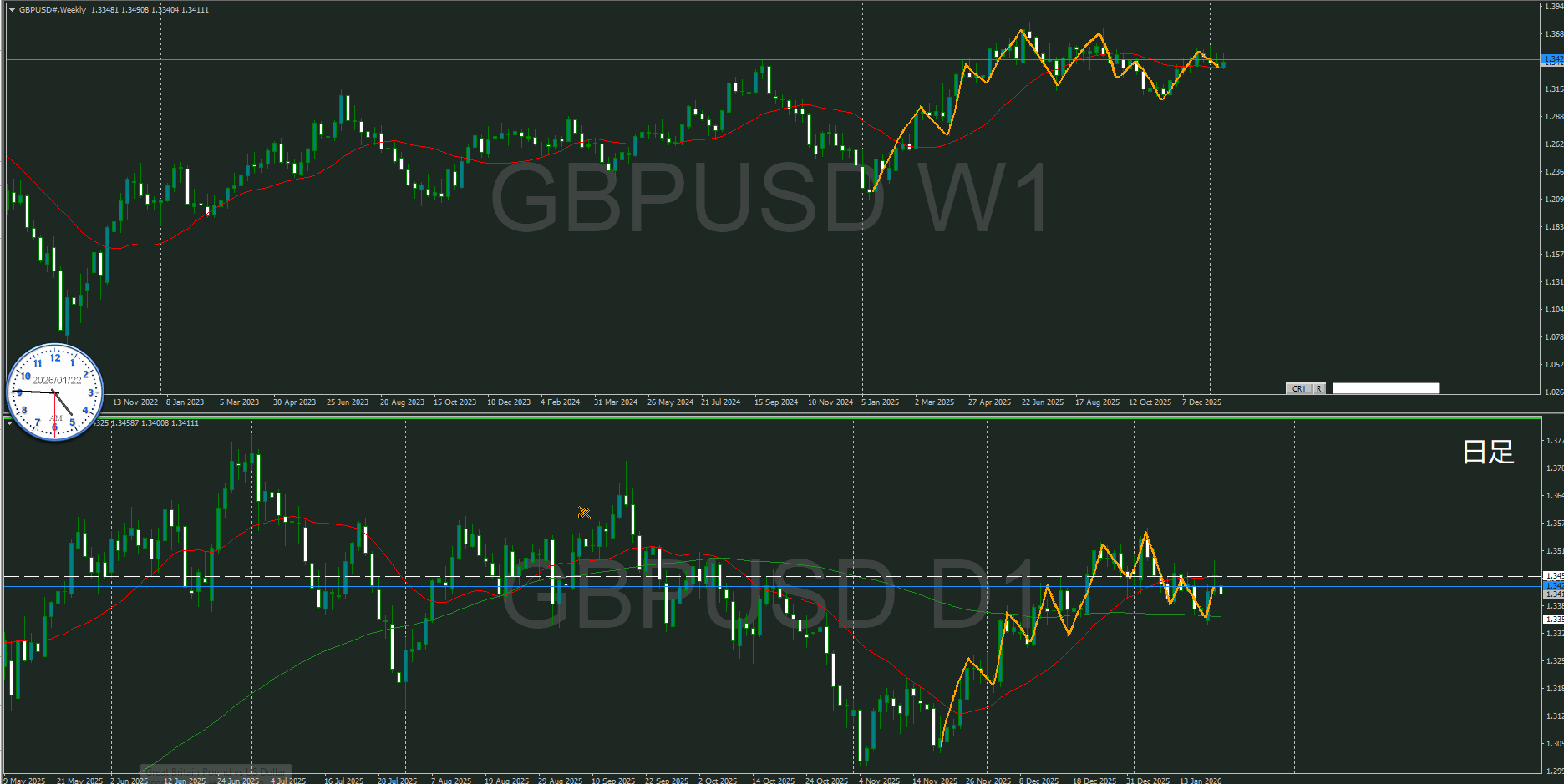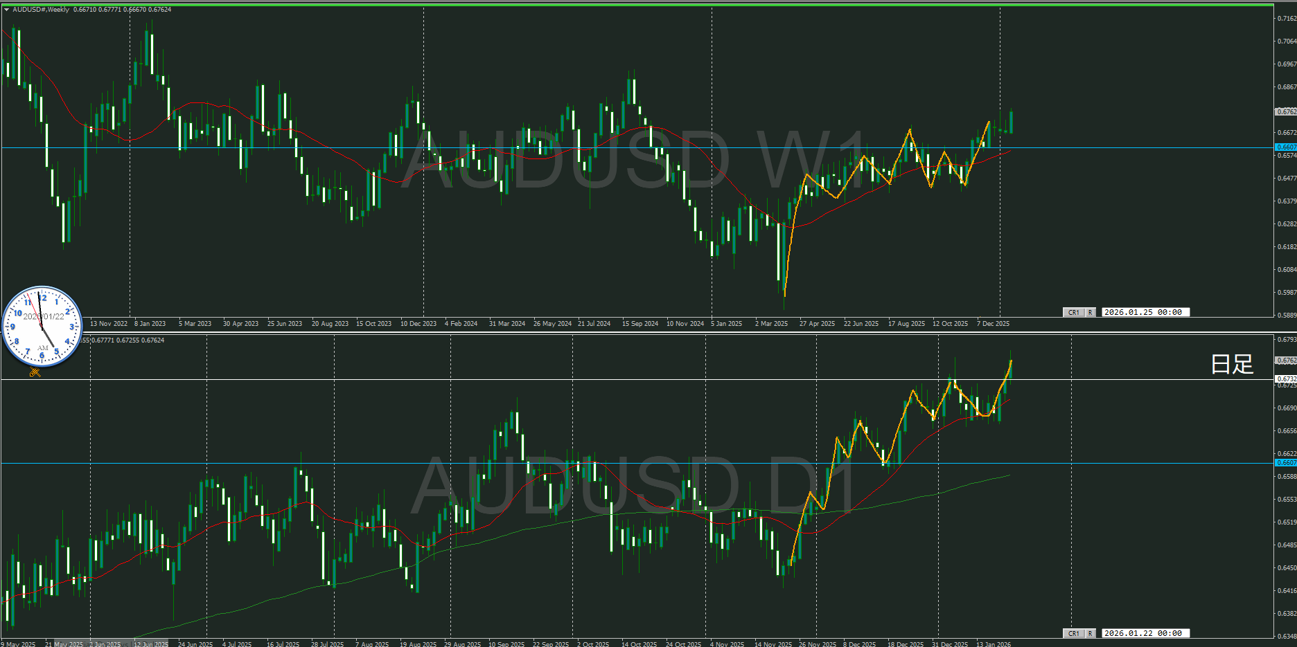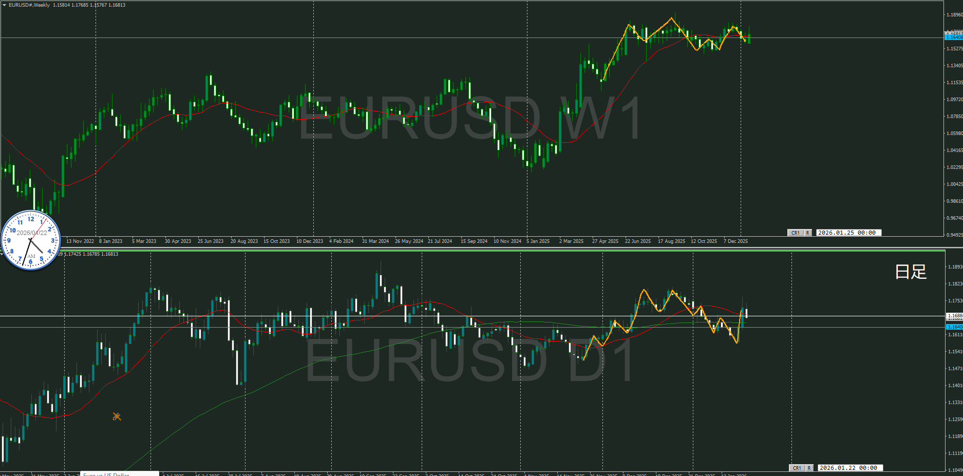 週足と日足は方向的に同じなんだけど、売り抑えられている週足と押し目買いされ易い日足 これは戦いが起きやすいんじゃないのかな